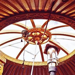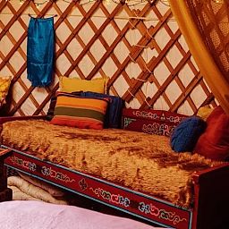 Die Jurte ist eine traditionelle mongolische Jurte mit einem Durchmesser von 7 Metern. Das Glampingzelt hat Doppeltüren mit schönen Schnitzereien und bietet Platz für 4 Personen. Das Zelt verfügt über ein bequemes Doppelbett und zwei Sofas mit guten Matratzen. Bei der Ankunft sind die Betten bereits gemacht. Zum Kochen können Sie die überdachte Außenküche des Campingplatzes benutzen. Dusche und Toilette befinden sich nur wenige Meter von der Jurte entfernt, im zentralen Sanitärgebäude des Campingplatzes. In der Jurte gibt es auch einen Wasserkocher und eine Nespresso-Maschine. Die Gäste erhalten bei ihrer Ankunft einen Korb mit Küchenwäsche, Toilettenpapier, Kaffee und Tee. Die Jurte wird mit einem einfach zu bedienenden Pelletofen beheizt. Bettwäsche, Energie und Reinigung sind inbegriffen.