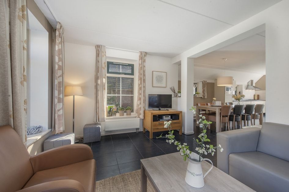 Le bungalow de type E Comfort 6+2 bedstee peut accueillir jusqu'à 6 adultes et 2 enfants. Ce bungalow indépendant sur Landgoed Het Grote Zand se compose de 2 étages et dispose de 3 chambres et de 2 salles de bains.Le salon est meublé d'un coin salon, qui est attenant à la cuisine ouverte avec un coin repas. Cette cuisine est équipée, entre autres, d'un réfrigérateur-congélateur, d'une cafetière à filtre, d'un four à micro-ondes combiné et d'un lave-vaisselle.Au rez-de-chaussée, il y a une chambre à coucher et une salle de bains. La chambre à coucher dispose de 2 lits simples. La salle de bains est équipée d'une douche et d'un lavabo. Il y a également des toilettes séparées ou situées dans la salle de bain.Au premier étage, il y a 2 chambres, chacune avec 2 lits simples. Il y a également un lit d'appoint pour 2 enfants. Il y a également une salle de bain avec une douche et un lavabo. Il y a également des toilettes séparées ou situées dans la salle de bain.Le bungalow dispose d'un jardin avec une terrasse meublée et un parasol.