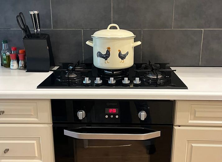Il y a une cuisine soignée avec une cuisinière à gaz à 5 feux, un salon avec un joli canapé d'angle, une table à manger, une grande chambre (lit double avec 2 matelas de 90 x 200 cm), une chambre plus petite avec des lits superposés (90 x 200 cm), des toilettes et une salle de bains avec douche.