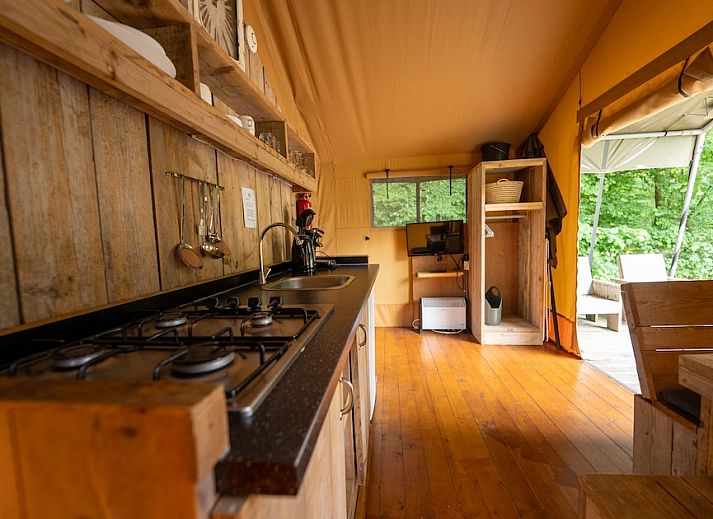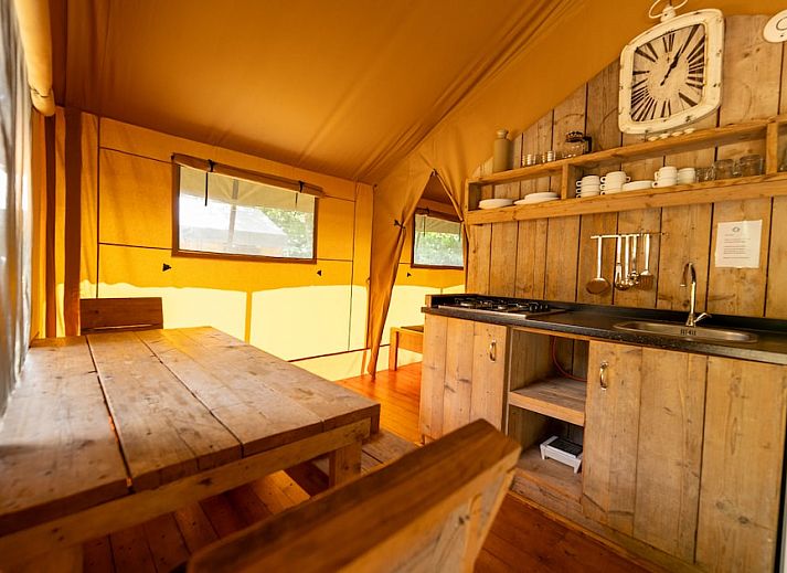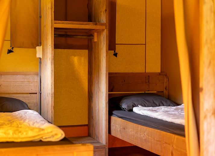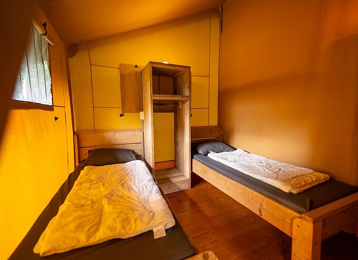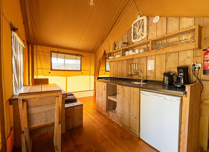 Dans les tentes Safari, vous aurez l'impression de faire du camping de luxe. Les tentes conviennent pour 4 personnes. Le salon est équipé d'une télévision et d'un chauffage. La cuisine est équipée d'un réfrigérateur, d'une plaque de cuisson au gaz, d'une bouilloire et d'une cafetière. La tente dispose d'un lit double et de deux lits simples. La tente Safari dispose également d'une véranda avec une table de pique-nique. Vous pouvez utiliser gratuitement le Wi-Fi. Cette partie du parc de vacances est sans voiture. Les jours d'arrivée et de départ, vous pouvez amener votre voiture à votre emplacement pour la charger et la décharger. Vous pouvez ensuite garer votre voiture dans le parking central.
