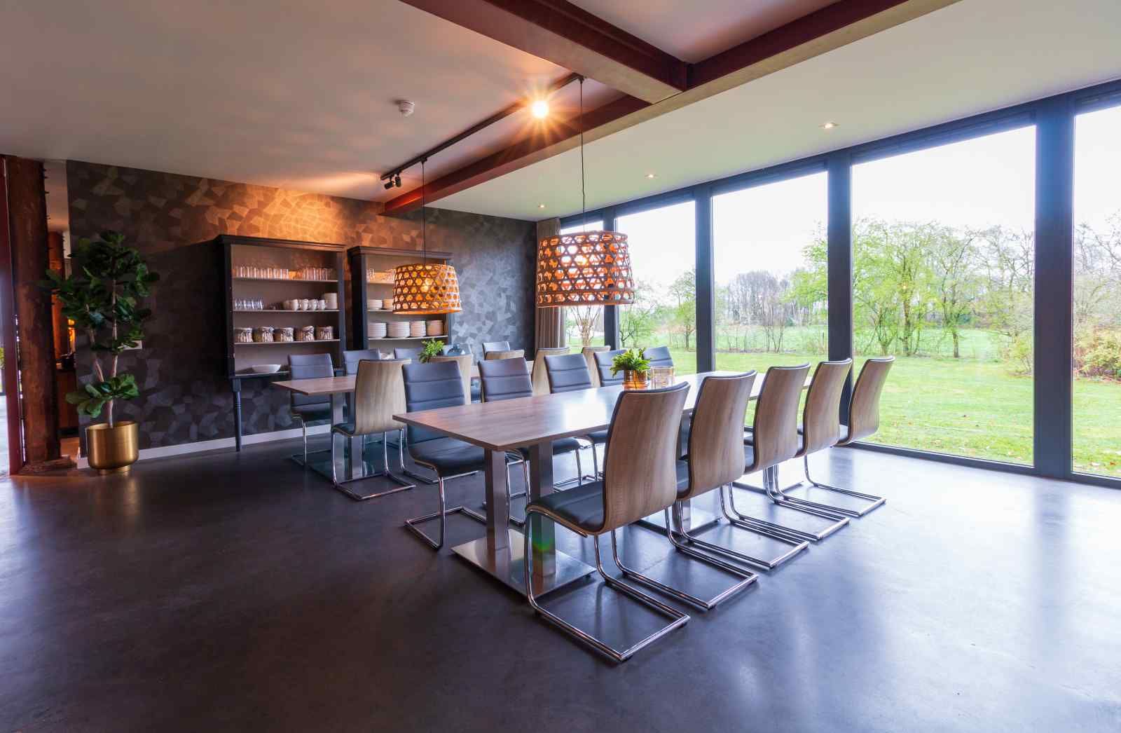 Ce luxueux hébergement de groupe à Ellertshaar peut accueillir 18 personnes et offre une vue magnifique sur l'eau. Dans ce village pittoresque, vous n'êtes qu'à 5 kilomètres de Borger, la capitale mégalithique des Pays-Bas. Vous avez passé la journée dehors et il est temps de vous détendre ? Un verre dans le salon couvert du jardin peut être une bonne idée. La vue sur l'eau est vraiment impressionnante ! Pour une détente optimale, le jacuzzi ou un bon livre (ou une sieste) dans le salon ou les chaises longues est certainement aussi une bonne option. Et une fois le calme revenu, il y a beaucoup de choses à faire en même temps. Une partie de football avec les enfants sur le terrain de football ou un plongeon rafraîchissant dans la piscine privée : tout cela est possible dans et autour de ce magnifique hébergement de groupe à Drenthe. En outre, les sept chambres disposent de leurs propres installations sanitaires, ce qui rend l'hébergement extrêmement adapté aux familles et aux amis, mais aussi aux groupes d'affaires et de soins.