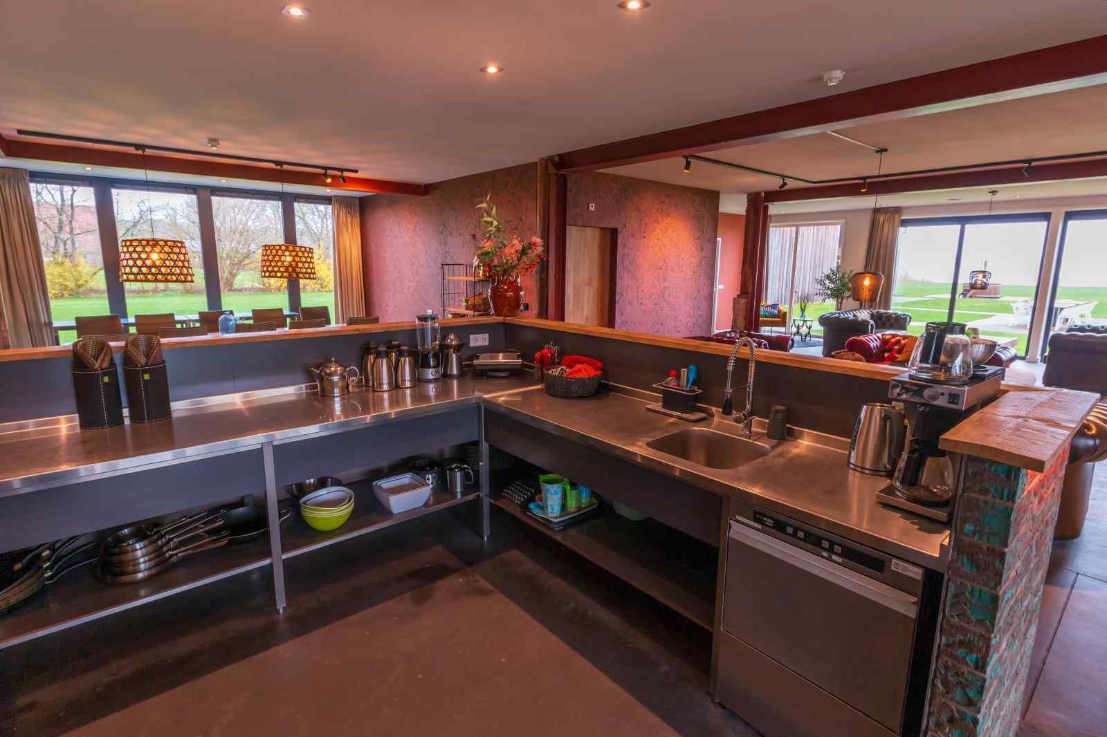 L'hébergement dispose d'un salon confortable avec les célèbres canapés Chesterfield. Installez-vous confortablement et savourez un verre de vin, un bon livre ou un bon film tout en admirant les bois et les prairies de la pittoresque Ellertshaar. Le salon est relié à la cuisine ouverte, qui est équipée d'appareils électroménagers de luxe. Il y a un lave-vaisselle, un micro-ondes, un four, un mixeur, un grill contact, une machine à smoothie, un mixeur plongeant, un presse-agrumes, une cafetière filtre professionnelle Bravilor et une bouilloire. Au rez-de-chaussée se trouvent trois chambres doubles, chacune avec des lits à sommier, une salle de bains et des toilettes. Au premier étage se trouvent les quatre chambres : deux chambres doubles, une chambre pour 5 personnes et une chambre pour 3 personnes, toutes avec des lits à ressorts, une salle de bains et des toilettes. En outre, tous les lits peuvent être séparés et deux lits d'enfant sont disponibles en standard. Tout est également conçu pour les enfants : il y a deux chaises hautes et, à l'intérieur, un coin jeux avec des jeux, une télévision à écran plat, un lecteur DVD et des films pour enfants et des dessins animés. Des films, des jeux, des livres et deux vidéoprojecteurs sont également disponibles dans le logement, ainsi qu'une connexion Wi-Fi gratuite. L'ensemble de l'hébergement est également accessible aux personnes à mobilité réduite. Ce logement fait partie du cottage de 30 lits DG707.