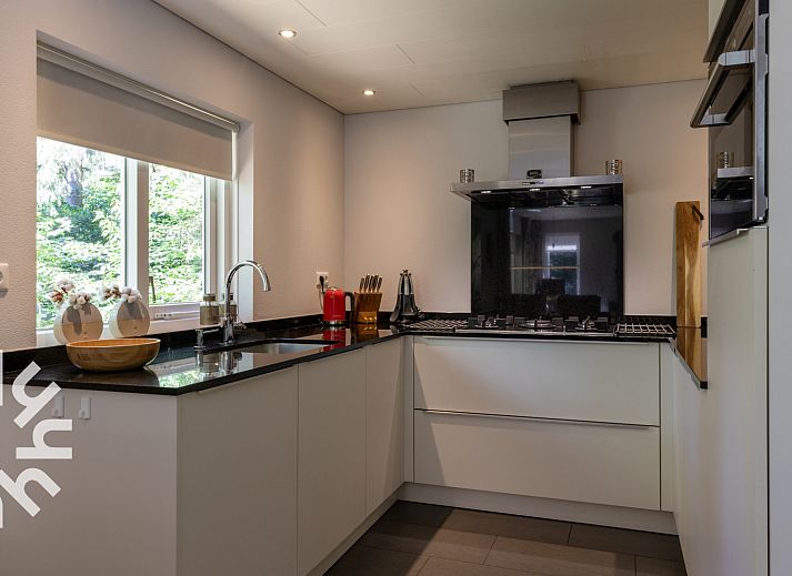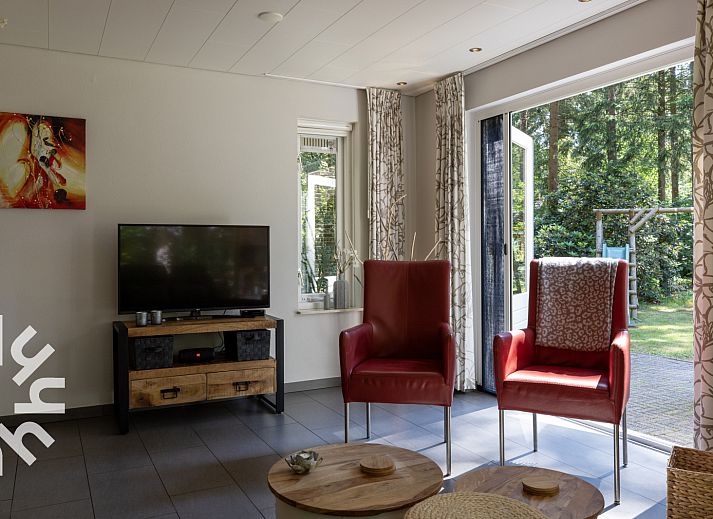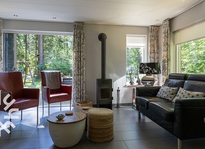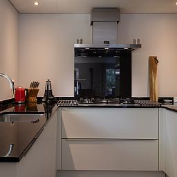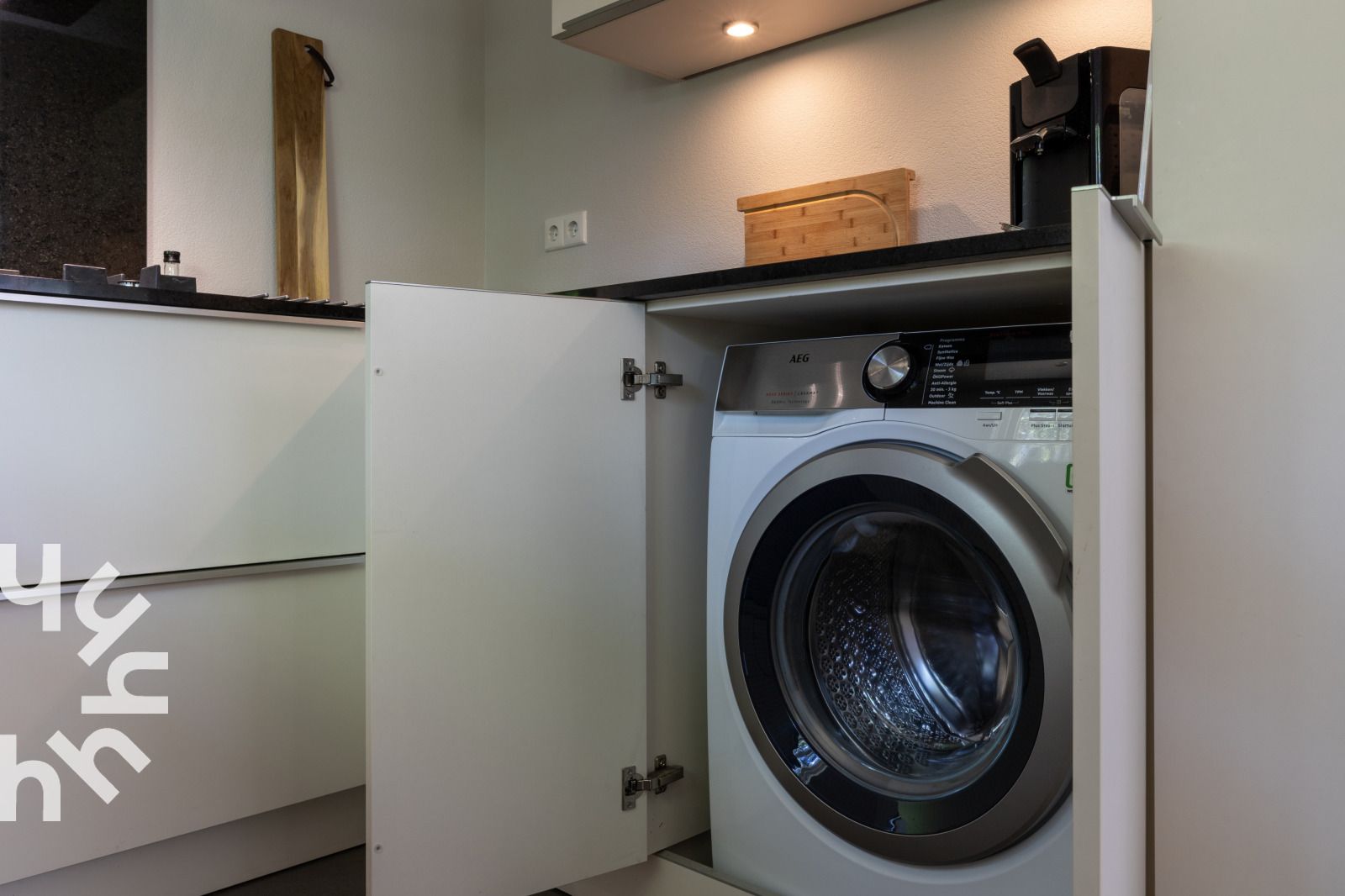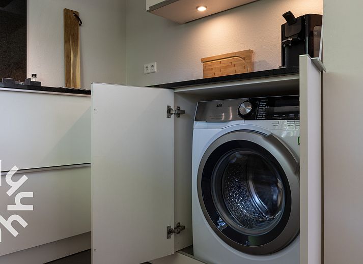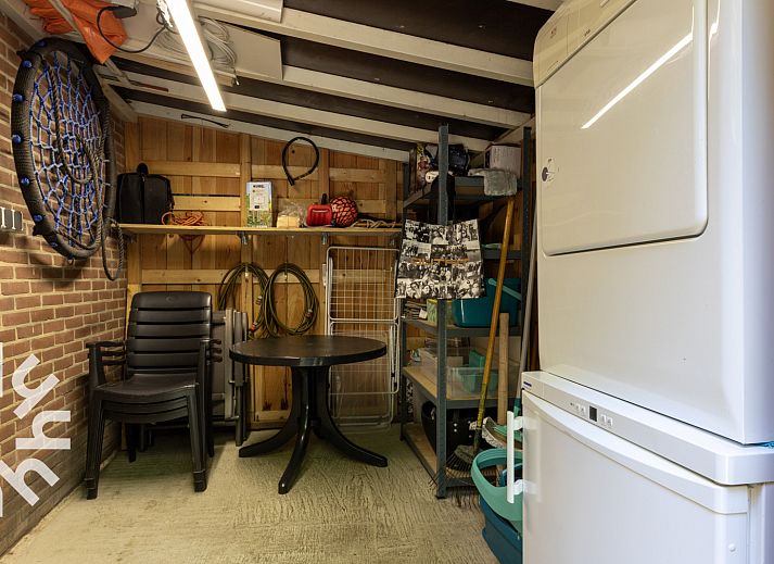 Salon confortable avec portes-fenêtres donnant sur la terrasse. Il y a le WIFI et une télévision. La cuisine ouverte est équipée, entre autres, d'un lave-vaisselle, d'un combiné magnétique, d'une cafetière Senseo, d'une bouilloire, d'une plaque de cuisson à cinq feux avec hotte aspirante, d'un réfrigérateur et d'un lave-linge. Le sèche-linge et le congélateur se trouvent dans le débarras. La salle de bains est équipée d'un lavabo et d'une douche. Il y a des toilettes séparées.