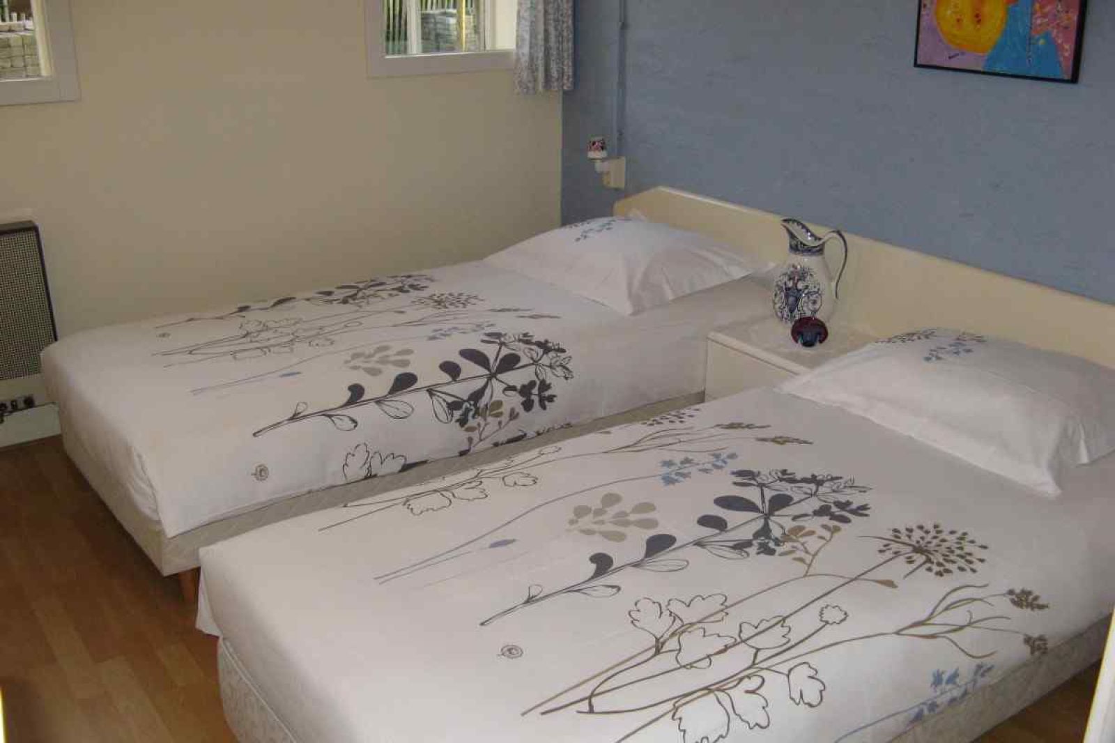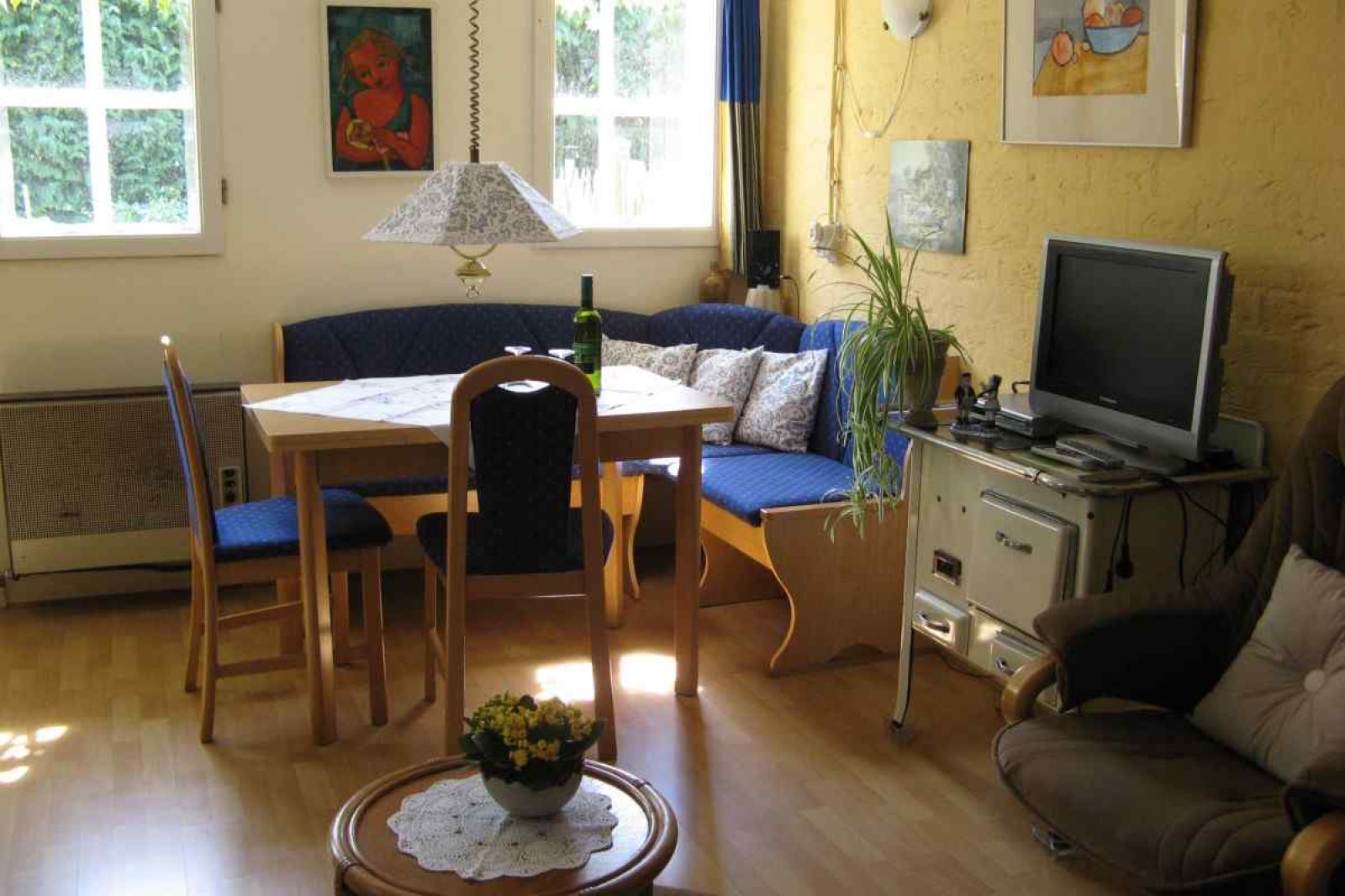 Le salon confortablement meublé dispose d'une salle à manger et d'un coin salon avec deux jolis fauteuils et une télévision. La cuisine ouverte entièrement équipée comprend un réfrigérateur, une cuisinière à quatre feux, un four, un micro-ondes et une cafetière à filtre. La chambre à coucher est équipée de deux lits simples à sommier. La salle de bains est équipée d'une douche, d'un lavabo et de toilettes. À l'extérieur se trouve un jardin privé avec une terrasse. Vous pourrez y jouir d'une vue imprenable. Les vélos peuvent être rangés dans l'abri et, si nécessaire, rechargés électriquement.