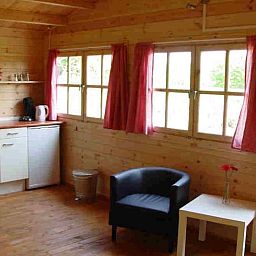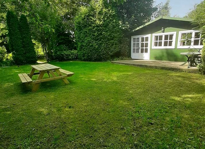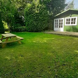 Le chalet est caché dans la verdure et peut accueillir 4 personnes. Il y a 2 chambres à coucher avec chacune 2 sommiers séparés (1,90m), une armoire et une commode.Un salon avec canapé en cuir, 2 sièges baquets en cuir, une table basse et une table à manger avec 4 chaises.Dans la cuisine ouverte vous avez un réfrigérateur avec compartiment congélateur, une cuisinière à gaz à 2 brûleurs et de l'eau chaude (chaudière) et froide. Vous pouvez également utiliser la bouilloire et la machine à café Senseo. Le matin, vous pouvez commander des sandwichs au café. La douche se trouve dans le bâtiment sanitaire voisin. Le chalet dispose de son propre jardin spacieux avec terrasse en pierre et pelouse. Il y a 4 chaises de terrasse, une table de terrasse et une table de pique-nique. Avec ou sans parasol, vous pouvez choisir entre l'ombre et le soleil tout au long de la journée.