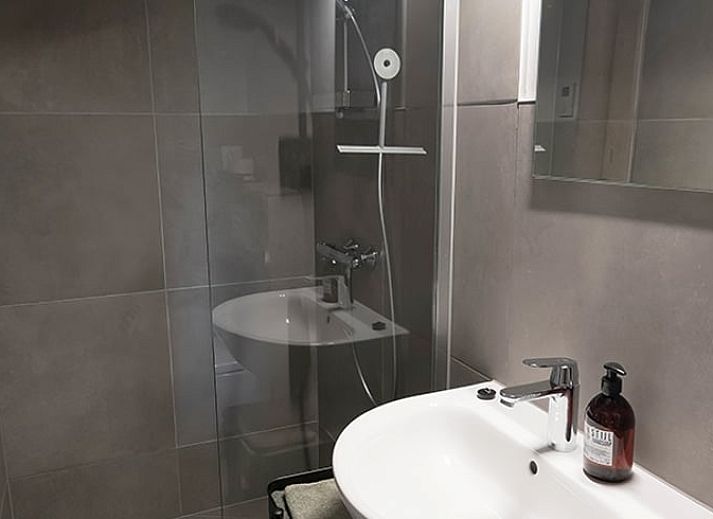 La maison de vacances ne consomme que de l'électricité et de l'eau. L'eau chaude est fournie par une chaudière. L'eau chaude n'est donc pas illimitée, mais suffisante pour se doucher, etc. Le chauffage et le refroidissement de la pièce peuvent se faire par l'intermédiaire de l'air conditionné, dans la salle de bain il y a un panneau infrarouge. Pour la cuisine, nous disposons de deux plaques à induction (pour 3 casseroles) et d'un four combiné/micro-ondes.