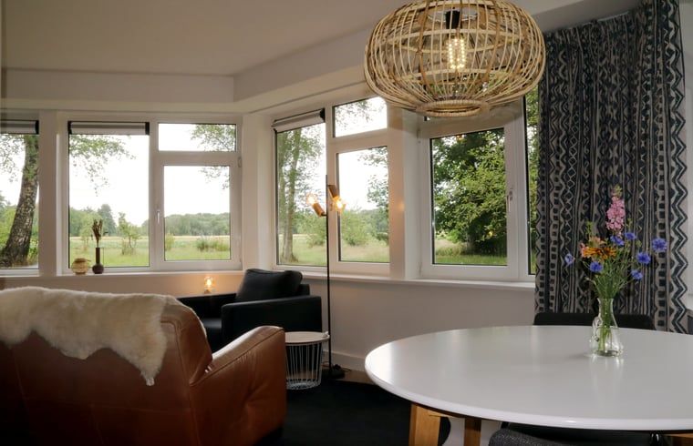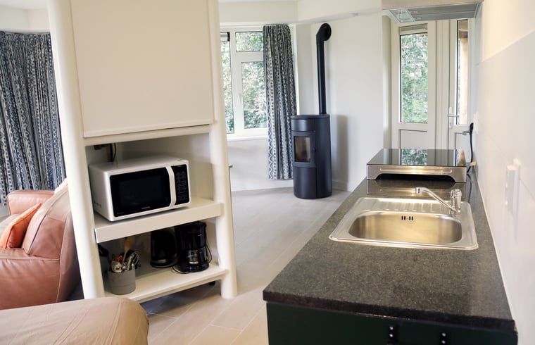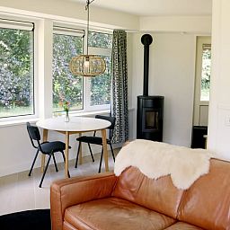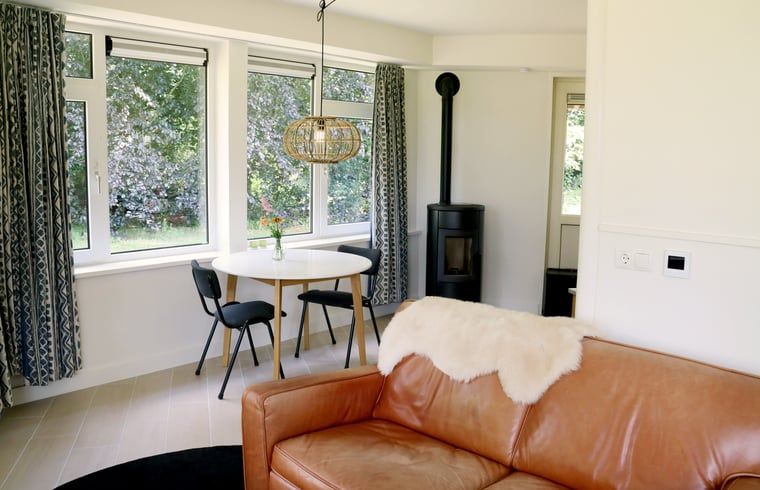La maison dispose d'un auvent et de son propre jardin. La maison d'hôtes a une superficie de 40 m2 et se trouve entièrement au rez-de-chaussée. Elle dispose d'un espace de vie spacieux : un coin salon avec canapé et fauteuil, une cuisine moderne, une salle à manger et un coin nuit ouvert avec un lit double. Les fenêtres de la maison donnent sur la vue, ce qui vous donne (presque) l'impression de vivre à l'extérieur. Grâce à l'isolation, la maison reste agréable et fraîche en été. En hiver, elle est agréablement chaude grâce à l'agréable poêle à palettes et au chauffage par le sol. Bien entendu, la maison dispose d'une salle de bains luxueuse avec lavabo, douche et toilettes. Un parking est disponible sur place.