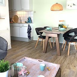 Notre appartement confortable et agréable d'environ 76 m² est équipé de toutes les commodités. Vous entrez par un petit hall qui mène au salon. Depuis le salon chaleureux, vous avez une vue sur le jardin. Avec un peu de chance, vous apercevrez des chevreuils et des écureuils courir dans le jardin ! L'appartement dispose d'une terrasse privée avec un coin salon agréable et un parasol. La cuisine ouverte est bien équipée, avec notamment un lave-vaisselle et un four à micro-ondes combiné. À l'étage, vous trouverez deux chambres, une douche et des toilettes supplémentaires. Un chien est accepté dans l'appartement. Les appartements peuvent être réservés toute l'année.