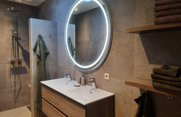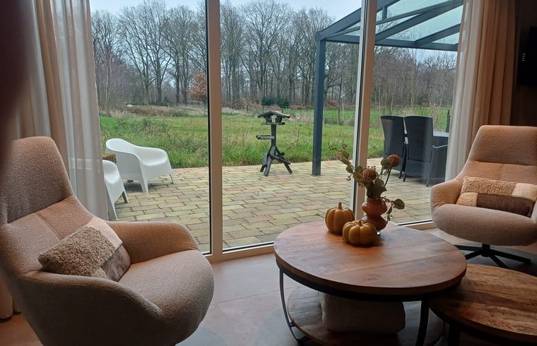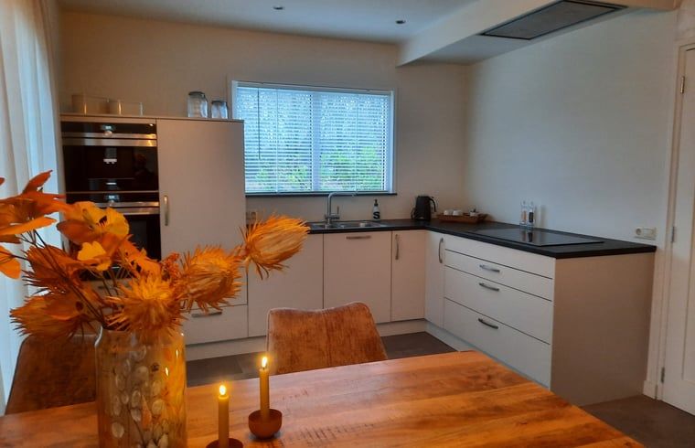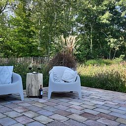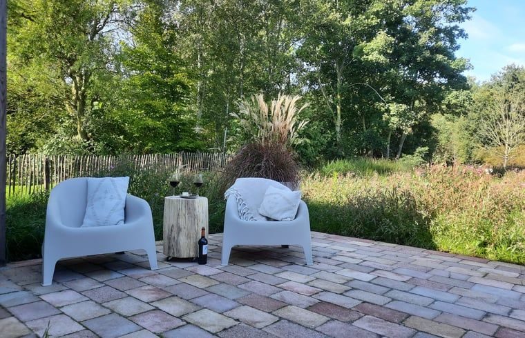 En passant par la cuisine, vous accédez à la terrasse couverte. Le grand jardin naturel invite à la découverte. Il comprend des chemins sinueux, des pièces d'eau et une cabane en bois confortable. Ici, on entend surtout les oiseaux et on profite du silence.