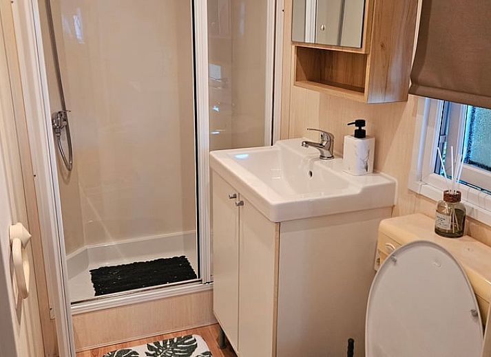 Nous louons notre chalet pour 4 personnes sur un petit camping, où toutes les installations nécessaires sont disponibles. Pensez à la piscine, à la laverie, au restaurant, au service de plats à emporter, à la réception, aux aires de jeux et à l'animation en saison ou lors de fêtes spéciales.