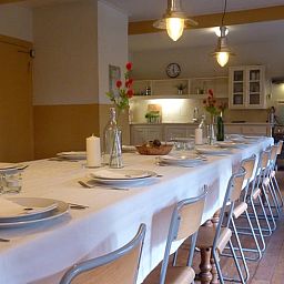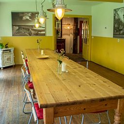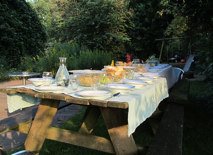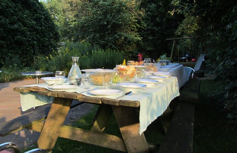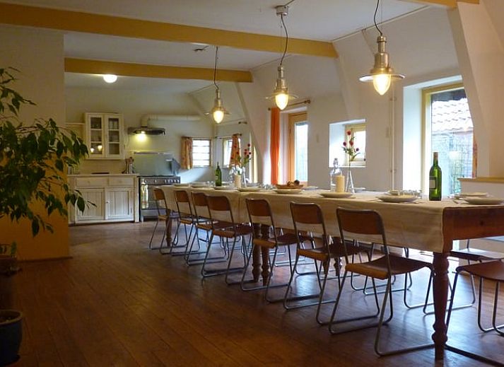 Le logement collectif dispose d'une grande cuisine confortable (± 50 m2), d'un vestibule et d'un salon confortable (± 40 m2). Depuis le salon, vous avez une vue sur la campagne de Drenthe d'un côté et sur notre beau jardin avec terrasse de l'autre. Il y a suffisamment d'espace pour que les enfants puissent jouer. La ferme a été meublée de manière contemporaine avec soin et attention aux détails.