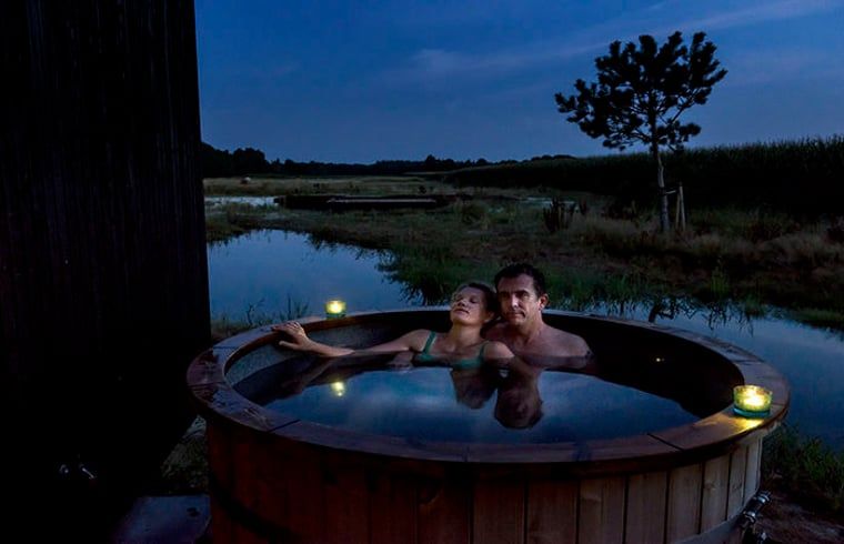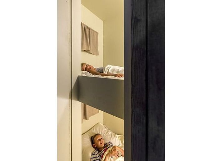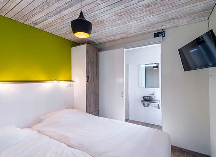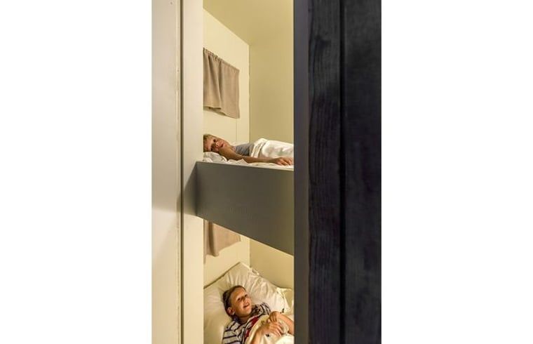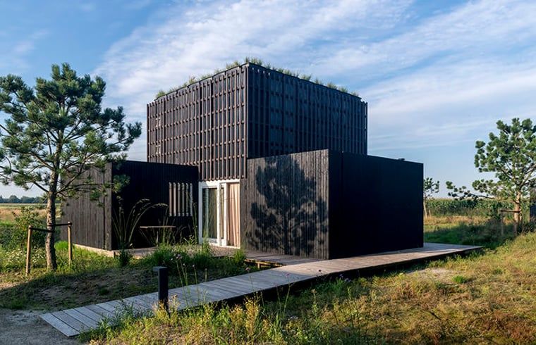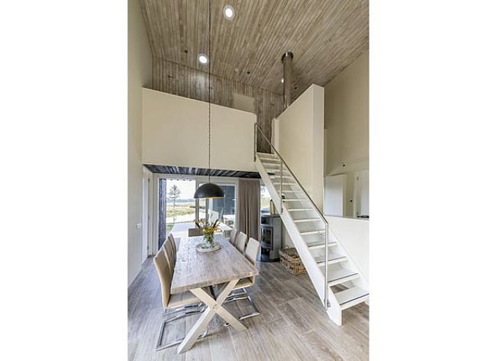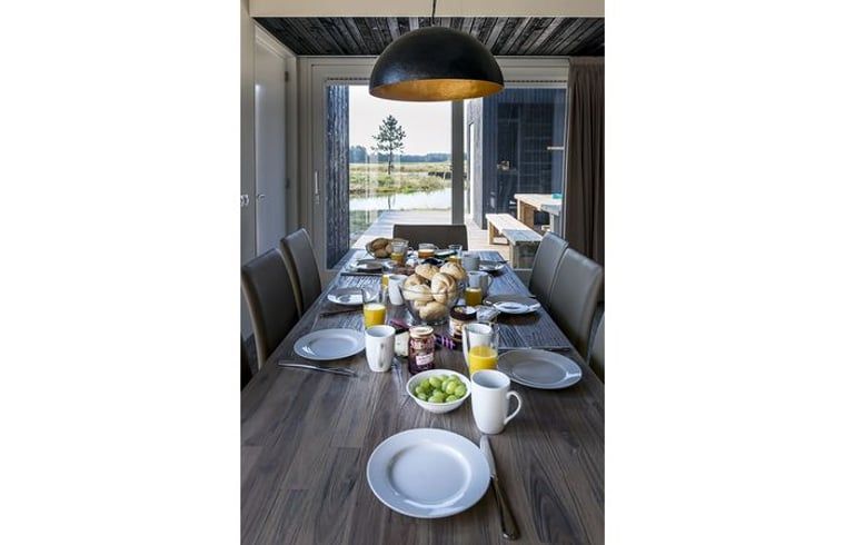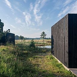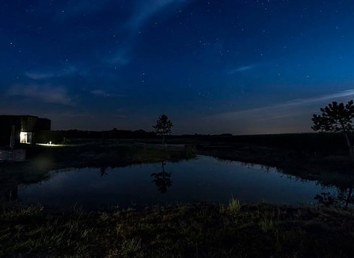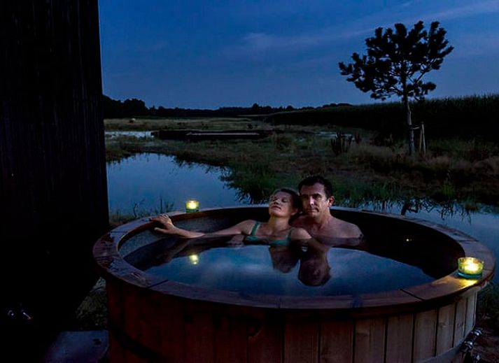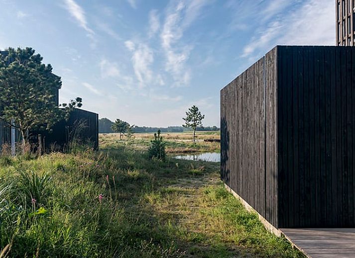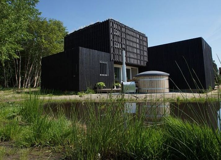 Un pavillon durable de bien-être pour huit personnes (situé au centre). Ce pavillon architectural est un hébergement aux accents scandinaves où, en tant qu'hôte, vous pouvez ressentir l'authenticité des vacances sans faire de compromis sur le confort et le luxe. L'atmosphère et l'aspect de l'établissement respirent la nature, non seulement en raison de l'emplacement du parc, mais aussi certainement en raison du caractère du lodge combiné à des éléments de bien-être durables dont vous pouvez profiter activement. Le lodge dispose d'un poêle à bois en pierre ollaire et d'un système de chauffage géothermique qui chauffe en hiver et rafraîchit en été. Le rez-de-chaussée comprend une chambre double avec salle de bains séparée, une chambre double avec douche et salle de bains attenantes. À l'étage, il y a un grenier avec deux lits/armoires de lit qui peuvent accueillir quatre personnes. Ce chalet peut donc accueillir des groupes jusqu'à 8 personnes. Un bain à remous chauffé au bois et un sauna finlandais permettent de passer un séjour relaxant dans la région de Drenthe.