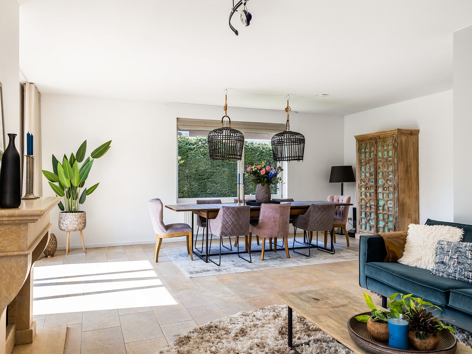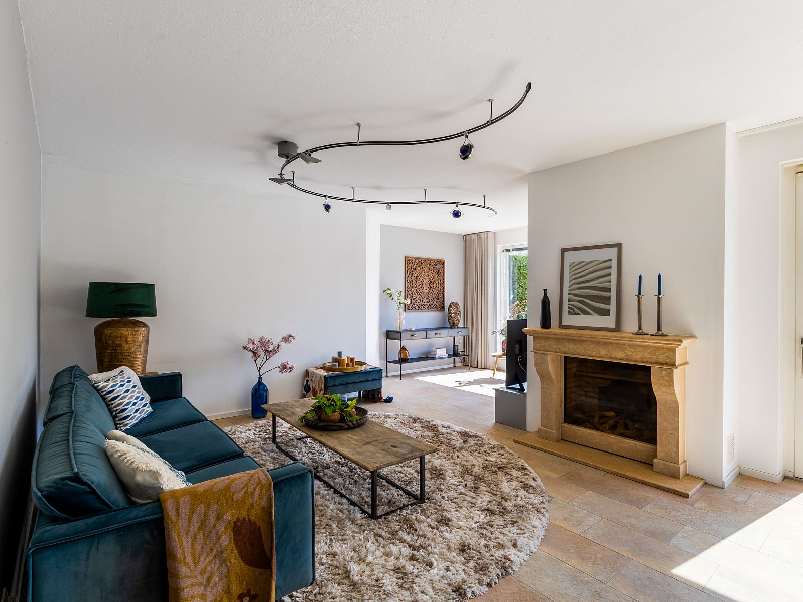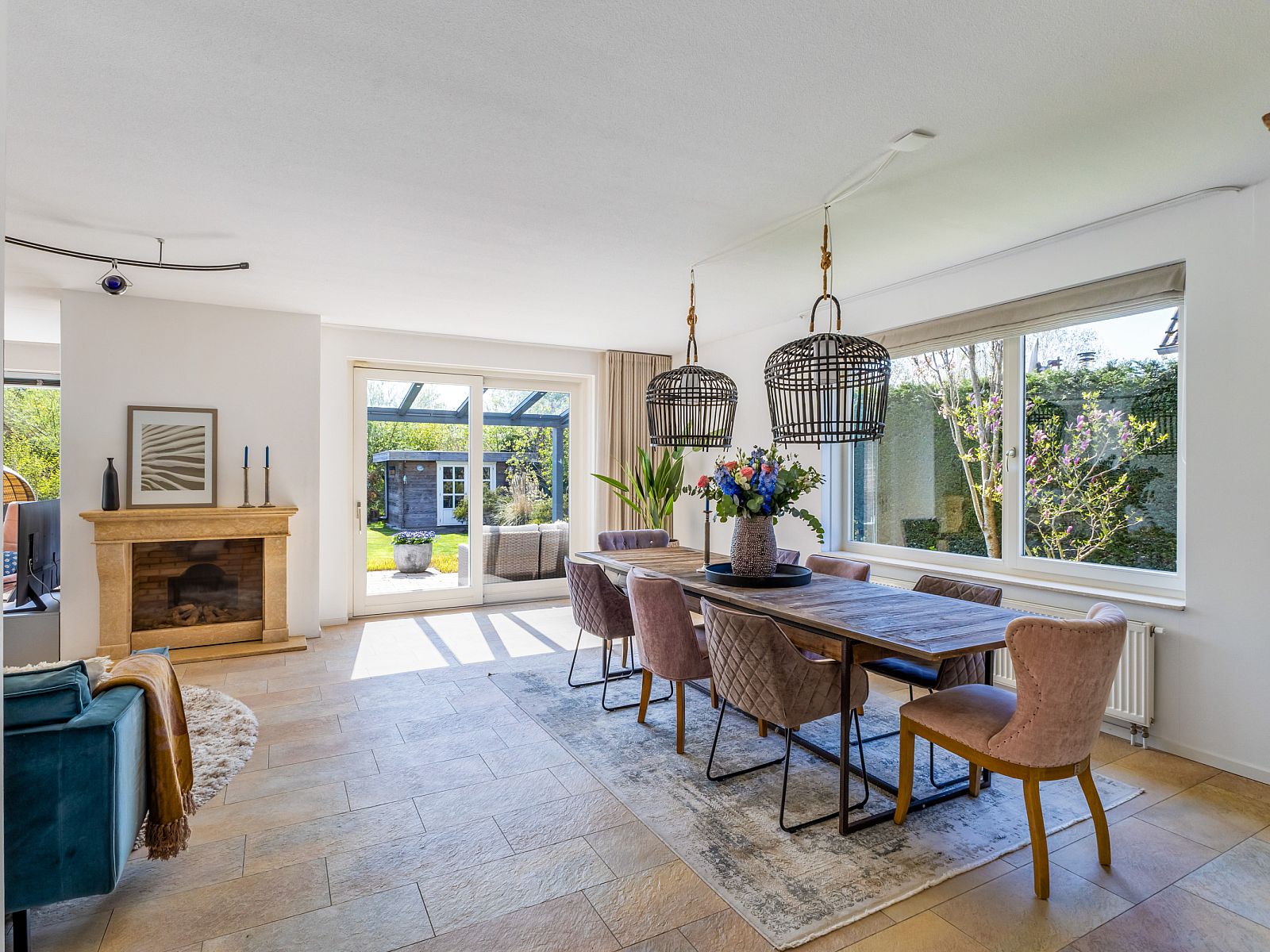 De woonkamer vormt het hart van de woning. Dankzij de grote raampartijen is er sprake van een prettige lichtinval en een directe verbinding met de tuin. De aanwezige Faber gashaard zorgt voor extra sfeer en maakt deze ruimte tot een comfortabele plek om te ontspannen.