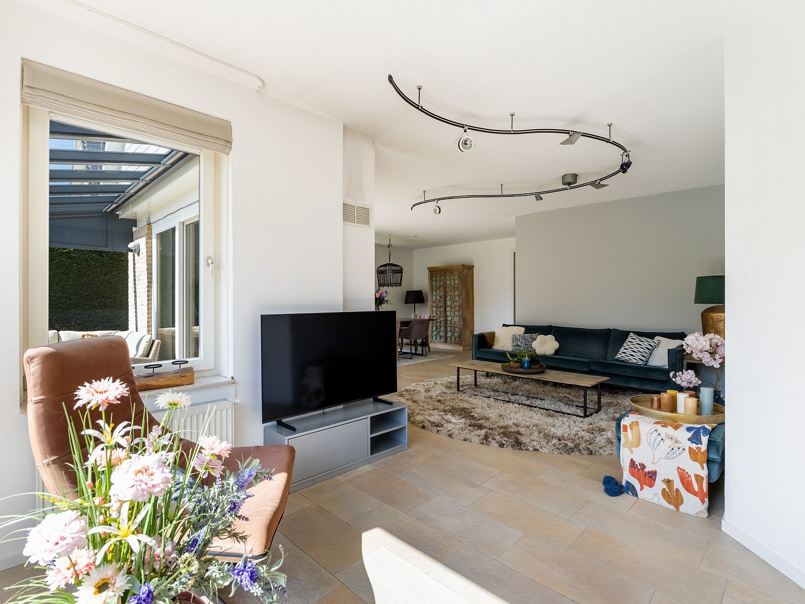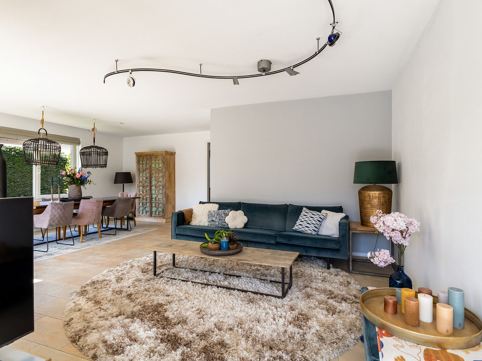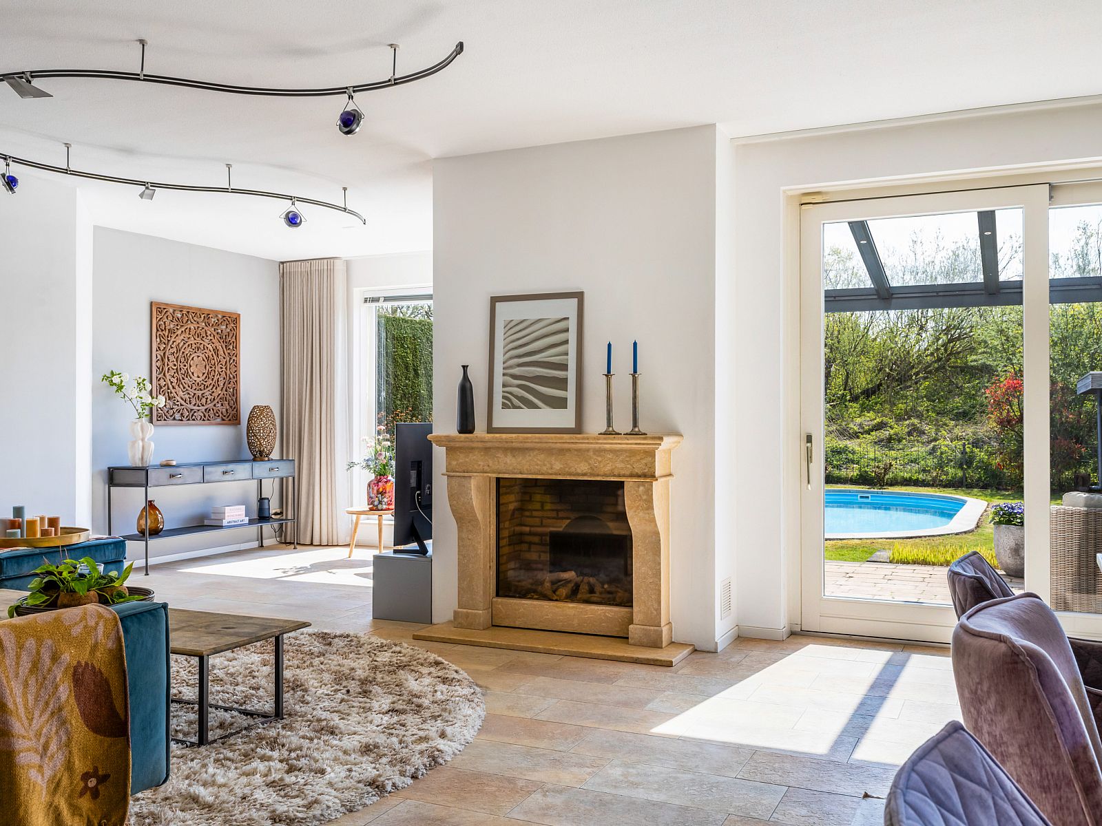 De woonkamer vormt het hart van de woning. Dankzij de grote raampartijen is er sprake van een prettige lichtinval en een directe verbinding met de tuin. De aanwezige Faber gashaard zorgt voor extra sfeer en maakt deze ruimte tot een comfortabele plek om te ontspannen.