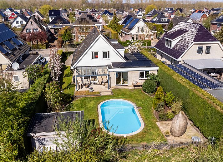 Het zwembad wordt verwarmd middels een warmtepomp die is gekoppeld aan de zonnepanelen, wat zorgt voor een duurzame en energiezuinige manier van verwarmen.