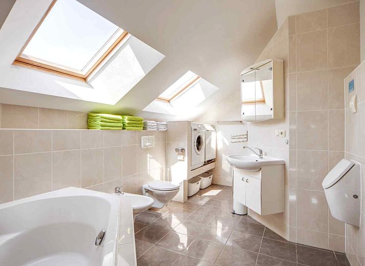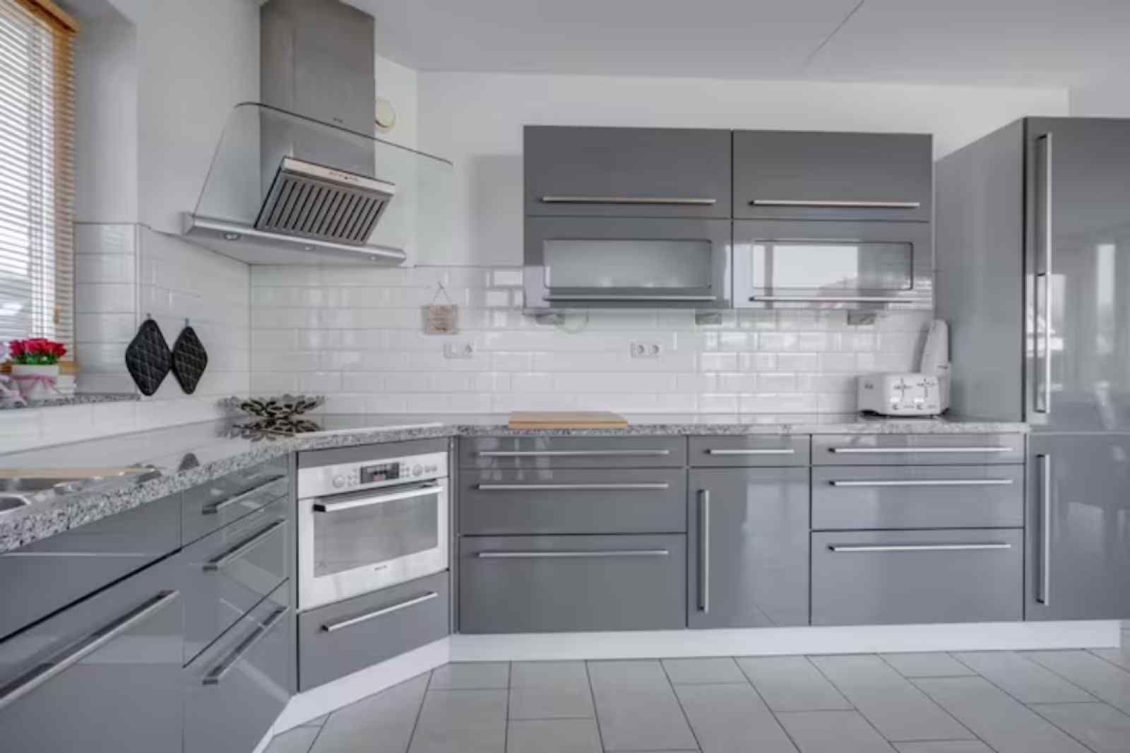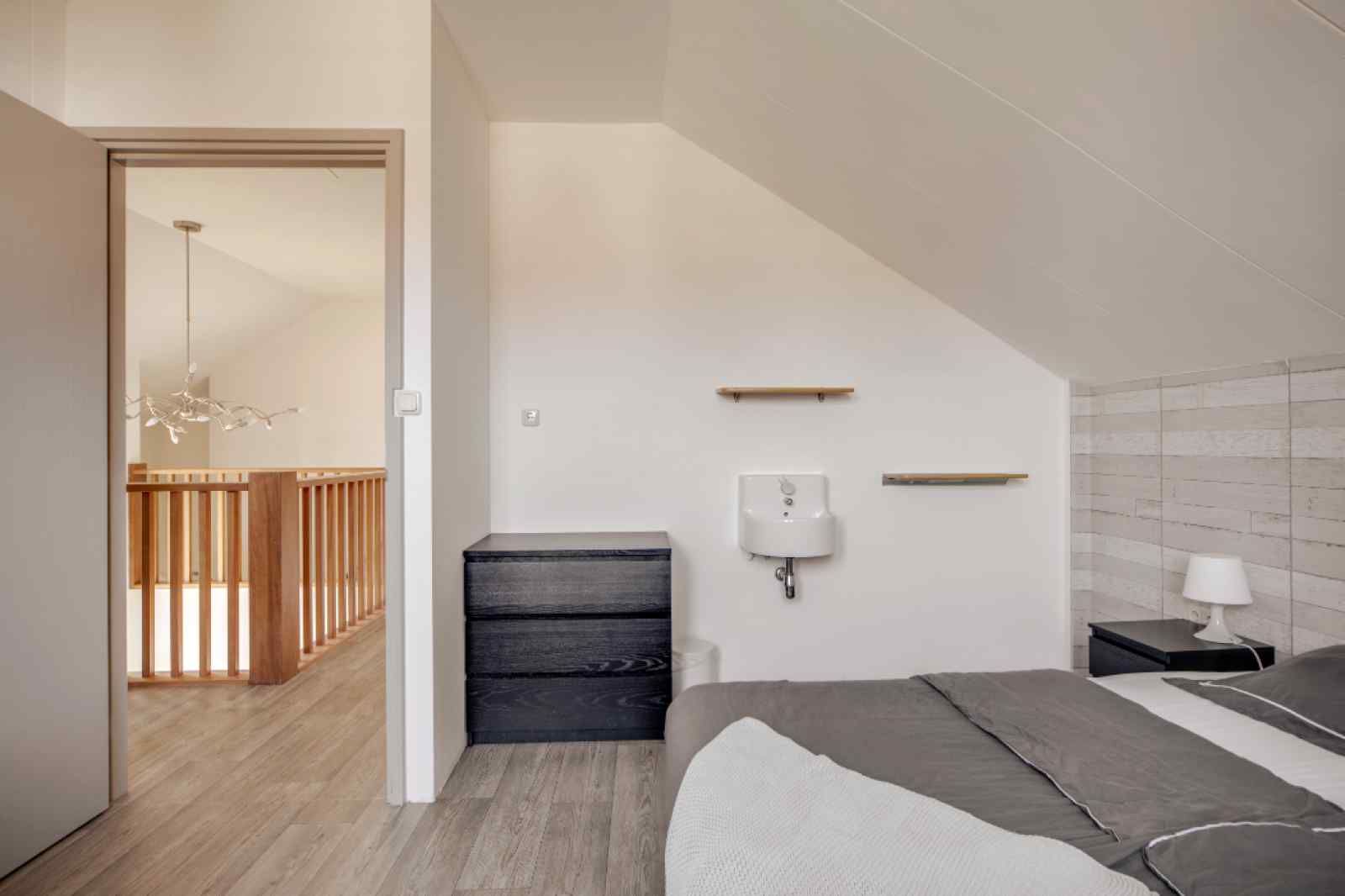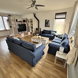 Au rez-de-chaussée, il y a un salon spacieux avec un canapé d'angle, un poêle à bois, une télévision avec Netflix, une Playstation 4, des livres et divers jeux. La cuisine spacieuse comprend une plaque de cuisson à induction, un réfrigérateur-congélateur américain avec glaçons, un four à micro-ondes combiné, un lave-vaisselle, une bouilloire, une machine à café Senseo et une machine à café filtre. Il y a des toilettes avec un urinoir.