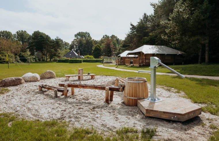 Pour les enfants, il y a aussi un trampoline, une balançoire, un hamac et une aire de jeux aquatiques.