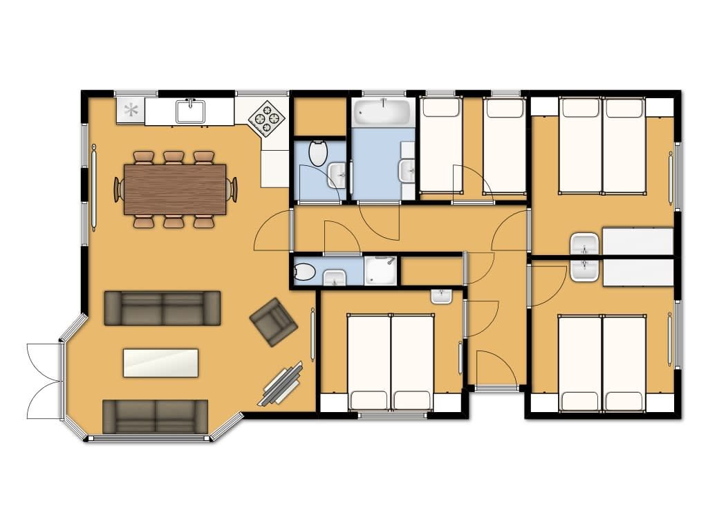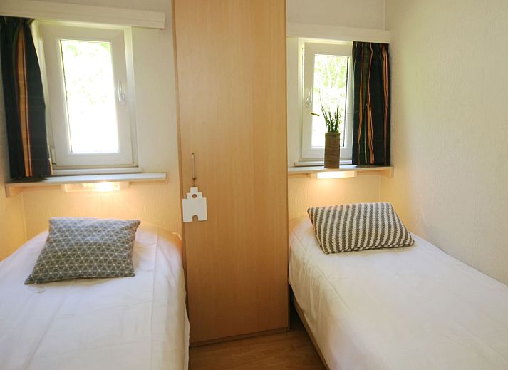 Il y a quatre chambres à coucher, chacune avec deux lits simples à sommier à ressorts de 0,80 x 2 mètres et une couette simple. Il est possible d'installer un lit pour bébé.