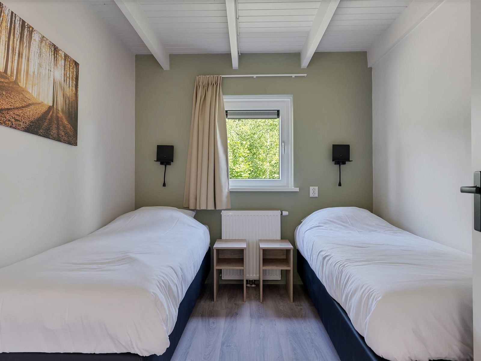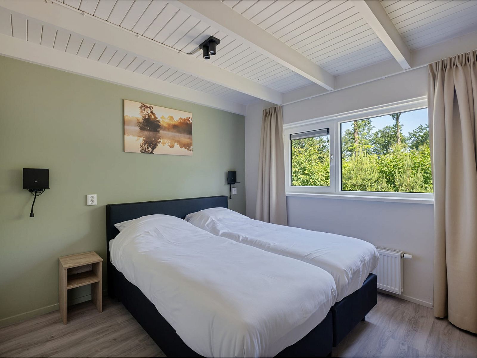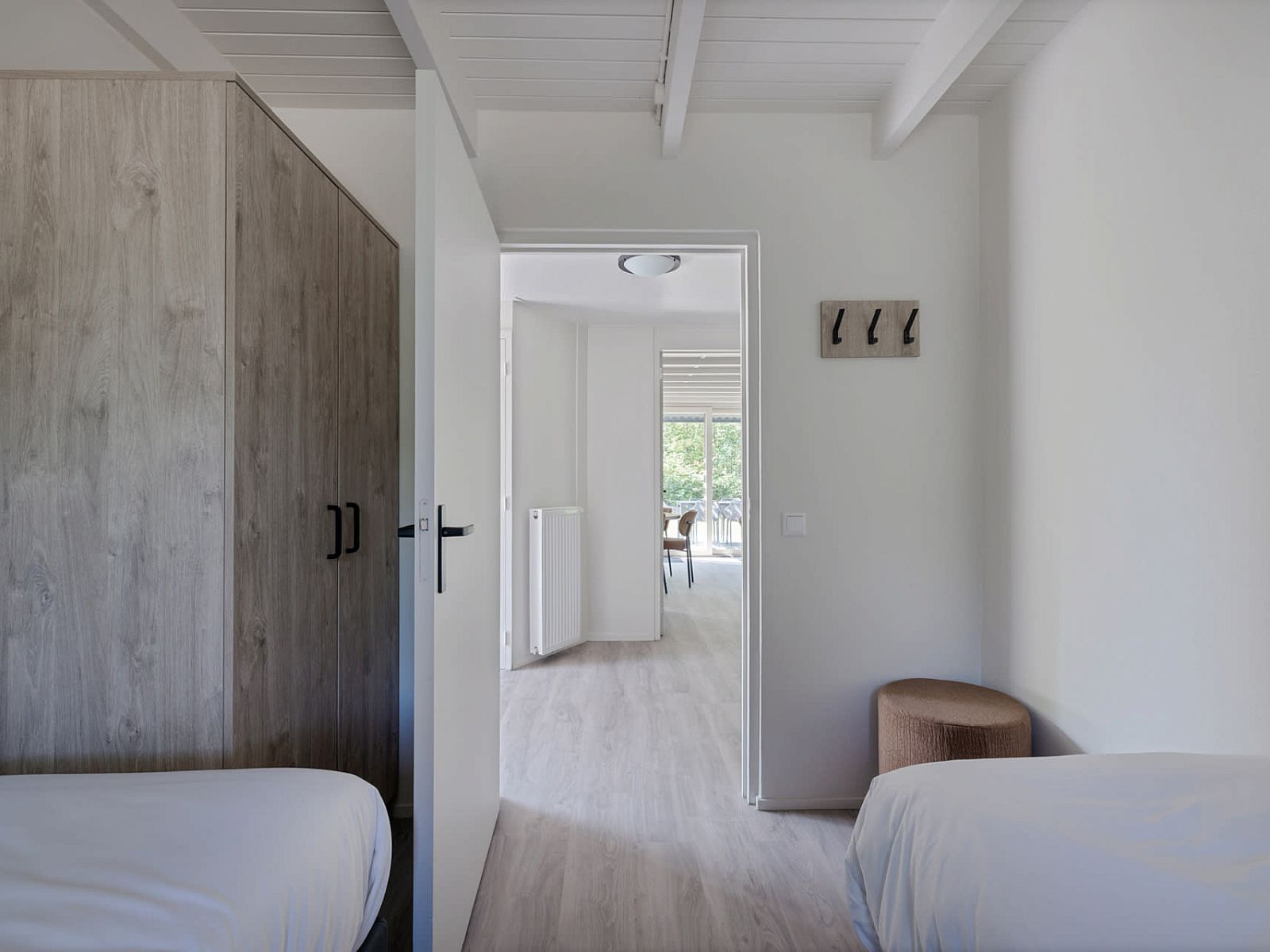 Il y a trois chambres à coucher, chacune avec deux lits confortables de 0,80 x 2 mètres à sommier tapissier. Chaque lit est équipé d'une couette simple. La plus grande chambre dispose de son propre lavabo. Il est possible d'ajouter un lit bébé.