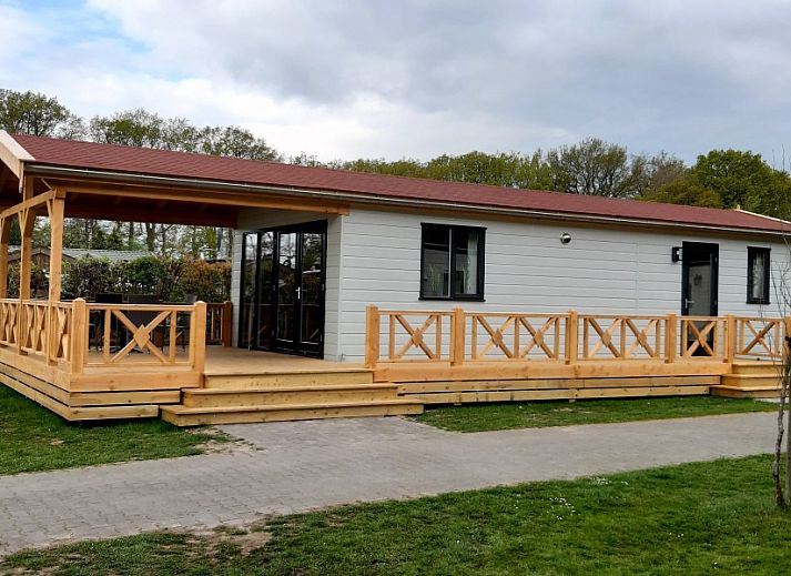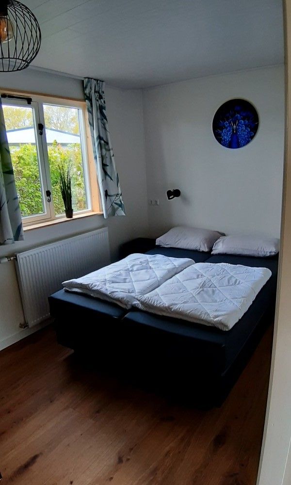 Chalet spacieux pour 4 personnes. avec cuisine, grande pièce et 2 chambres, douche, toilette et une grande véranda avec mobilier de jardin.