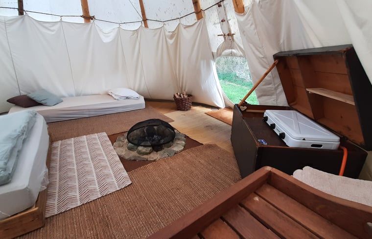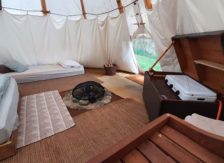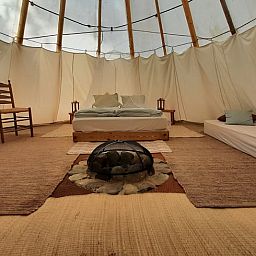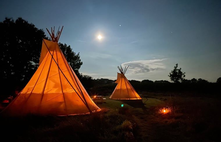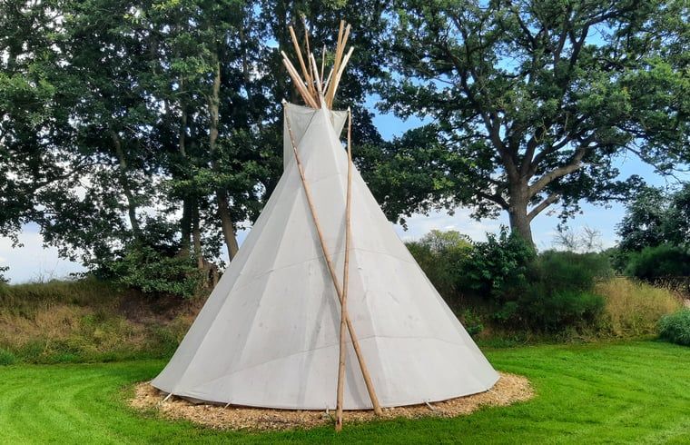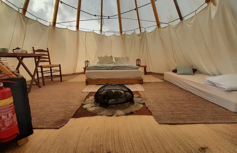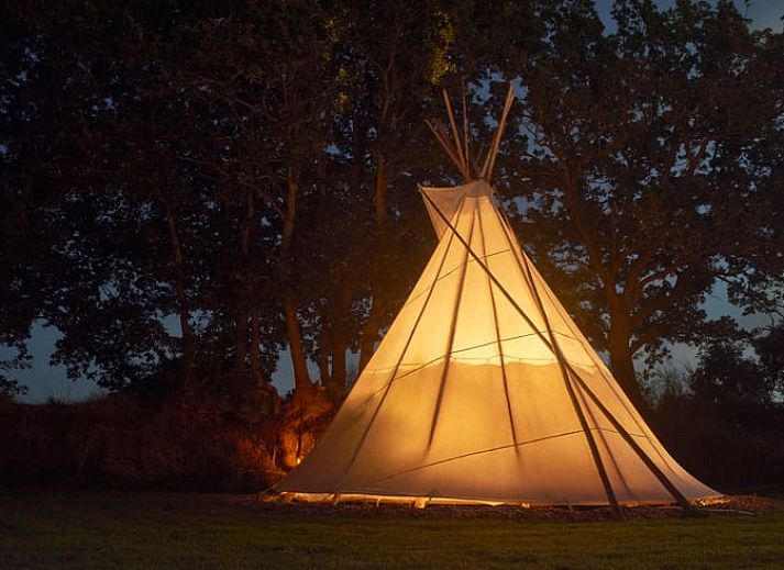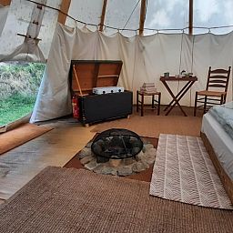 Nous sommes une start-up qui exploite une petite ferme durable avec un mini-camping. Venez nous rendre visite dans l'un de nos tipis lors de notre « ouverture ». Notre tipi « Eagle » peut accueillir quatre personnes. Il comprend un lit double (140 cm de large) et deux lits simples. Votre tipi dispose d'un branchement électrique, d'une cuisinière simple avec des ustensiles de cuisine, de draps, de serviettes et d'un petit foyer. Les lits sont déjà faits à votre arrivée. Un foyer extérieur commun se trouve à proximité du tipi. Des toilettes et une douche communes avec eau chaude sont à votre disposition. Une salle commune avec cuisine est également disponible, ainsi qu'un magnifique espace naturel verdoyant. Seuls des produits biodégradables sont utilisés. Natuurwild est un site non-fumeur, un espace fumeur est prévu à cet effet.