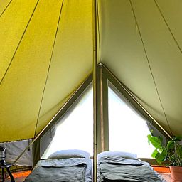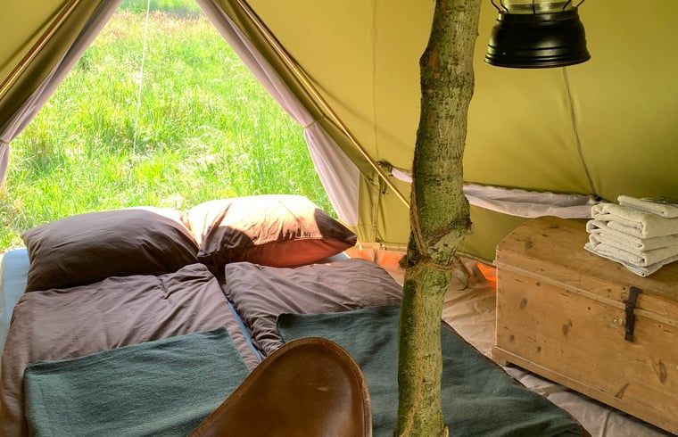Retour aux sources dans cette magnifique tente Bell « Grutto ». Profitez du cadre naturel de cet hébergement romantique. Détendez-vous dans ce lieu exceptionnel avec vue sur les prairies, la forêt et la nature. « Grutto » dispose de son propre petit jardin avec un emplacement pour faire un feu de camp et des sièges. Notre tente Bell « Grutto » peut accueillir trois personnes (max. 4 avec des enfants). Elle dispose de deux lits simples (140 cm de large) et d'un lit simple. « Grutto » est équipée d'ustensiles de cuisine, de draps, de serviettes et d'un petit poêle à bois. Les lits sont déjà faits à votre arrivée. Nous disposons d'un très bel équipement pour cuisiner en plein air sur le feu de camp. Vous pouvez l'utiliser à votre guise. De nouvelles salles de bains communes confortables avec eau chaude sont à votre disposition. Espace commun avec cuisine, grande table à manger commune et magnifique espace naturel verdoyant. Nous sommes situés dans une zone rurale où les grandes routes sont peu bruyantes. Utilisation exclusive de produits biodégradables.