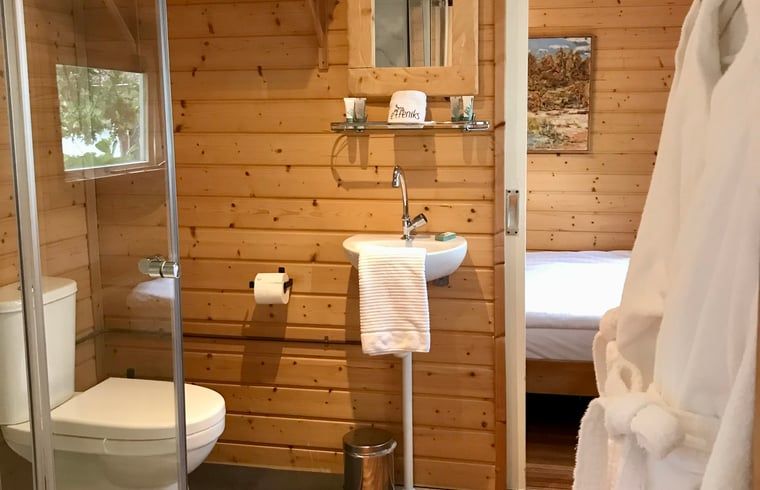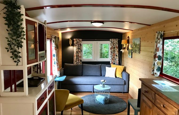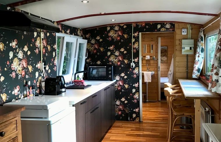 Vivez l'expérience d'un séjour dans un très grand wagon tzigane avec un bain à remous privé. Notre wagon salon de 13 mètres de long offre suffisamment de confort pour 2 personnes. Il y a une chambre à coucher avec un généreux lit à sommier (160x200) et un confortable canapé-lit (140x200) dans le coin salon, ce qui permet de dormir séparément. Le cottage naturel dispose d'une cuisine spacieuse et d'un bar à petit-déjeuner donnant sur le jardin et la piscine. La salle de bains est équipée d'une douche spacieuse et de toilettes. Vous disposez de votre propre jardin et d'un bain à remous privé pour profiter du plein air. Nous remplissons le jacuzzi d'eau fraîche avant votre arrivée et préparons le bois pour que vous puissiez commencer immédiatement. Nous fournissons des lits faits et étendons les serviettes, les peignoirs et le linge de cuisine, de sorte que vous n'avez pas à vous soucier des "effeniks".
