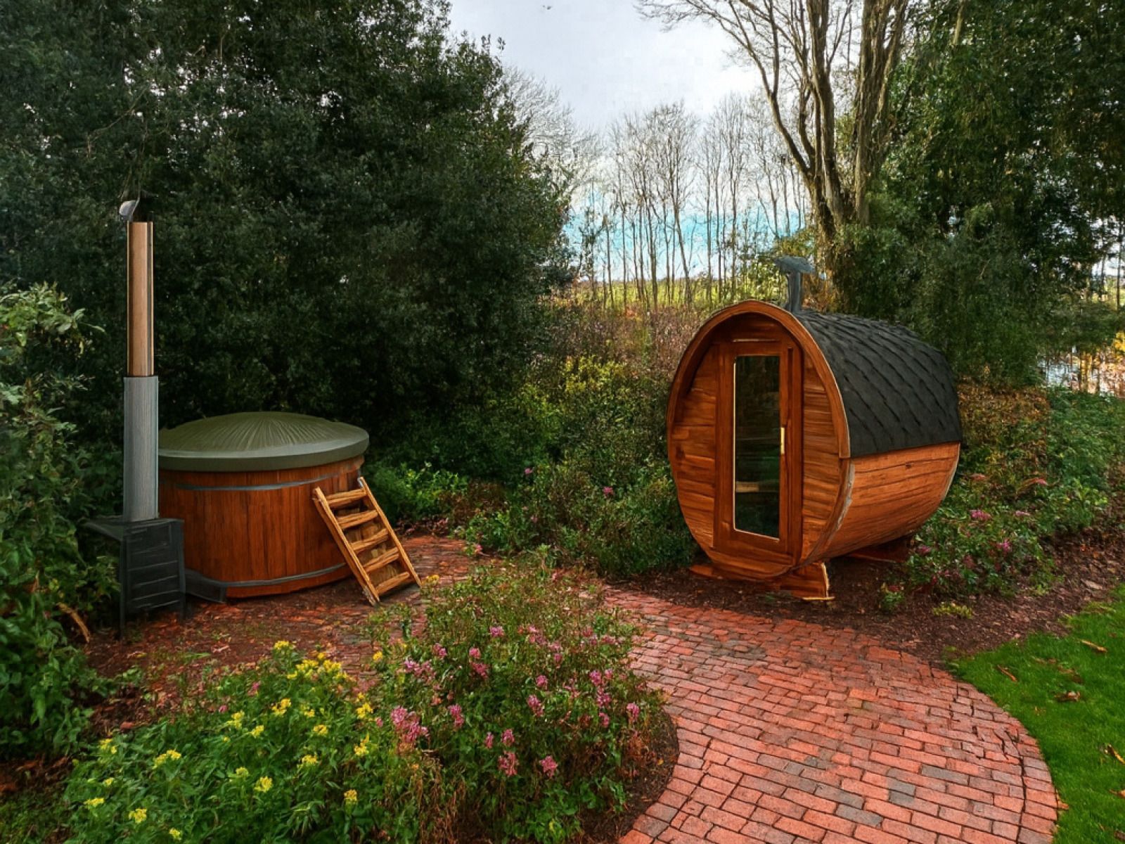 À l'extérieur, vous profiterez d'un grand jardin avec plusieurs espaces pour s'asseoir, notamment au bord de l'étang où vous pourrez lancer votre canne à pêche en un rien de temps. Le bain à remous et le sauna à barils offrent un merveilleux moment de bien-être en plein air.