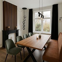 Cette élégante maison de campagne pour 10 personnes est située dans l'ancienne maison du directeur, à proximité de Sneek. À l'intérieur, vous trouverez une cuisine moderne avec un bar et une salle à manger confortable avec une longue table et des vues sur le grand jardin du parc. Le salon confortable avec cheminée offre tout l'espace nécessaire pour se détendre ensemble. La maison dispose de cinq chambres, chacune avec une salle de bains privée, dont une avec une baignoire. Elle est donc idéale pour les familles et les groupes d'amis qui apprécient l'intimité et le confort.