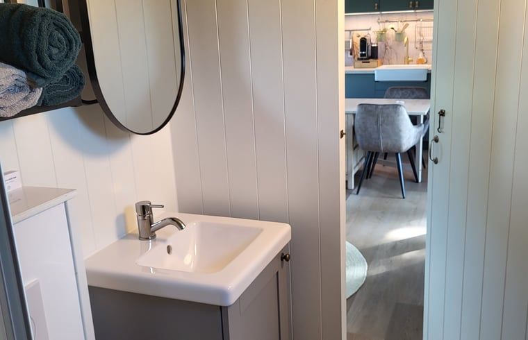 La nature joue un rôle prépondérant dans cet hébergement inoubliable. Depuis la véranda, vous pourrez apercevoir des cerfs, des lièvres et des oiseaux, avec une vue unique sur la campagne de Jelsum. Vous pouvez vous prélasser sur le magnifique salon ou vous détendre dans le sauna ou le bain à remous. Notre Eehouse est entièrement équipée et dispose de sa propre climatisation, d'une cuisine de luxe et d'une belle salle de bains. Le lit double de 1,40 offre de l'espace pour 4 personnes et il y a une chambre principale séparée avec un matelas Emma. Il y a donc deux zones de couchage séparées. Toute l'électricité est produite par des panneaux solaires. L'eau chaude provient de la chaudière à pompe à chaleur et l'eau est filtrée par le filtre Helophyte. Une Tiny House proche de la ville, mais complètement libre au milieu de la nature où vous pouvez faire du vélo, pêcher ou pratiquer des sports nautiques (2 vélos, 4 vélos électriques, vélo cargo électrique, whisper boat, voilier et SUP à louer) depuis peu nous avons aussi une rampe de mise à l'eau pour les petites embarcations. En outre, nous cultivons des fruits et légumes biologiques et vous trouverez des moutons et des poules.