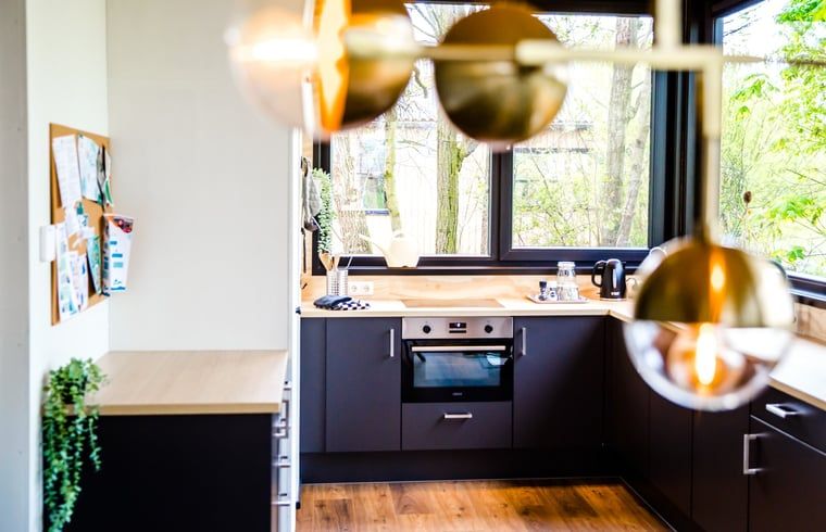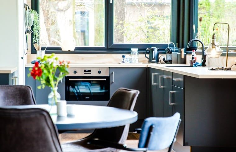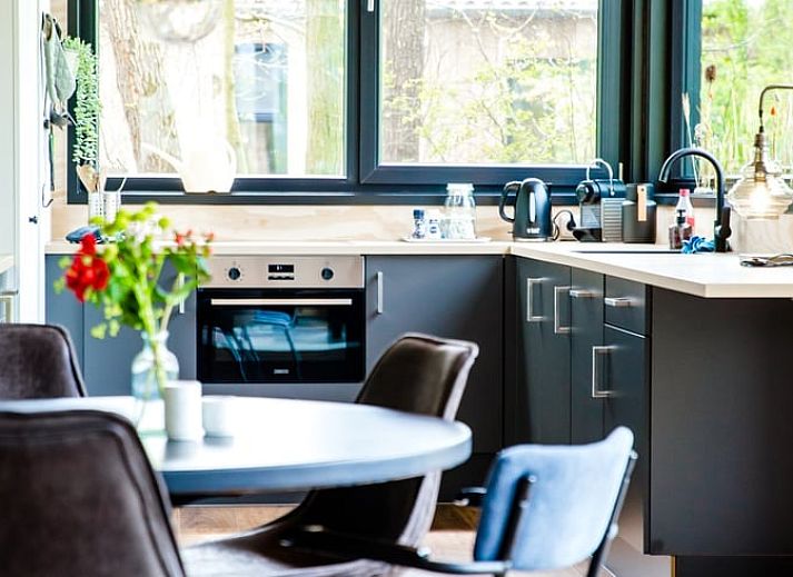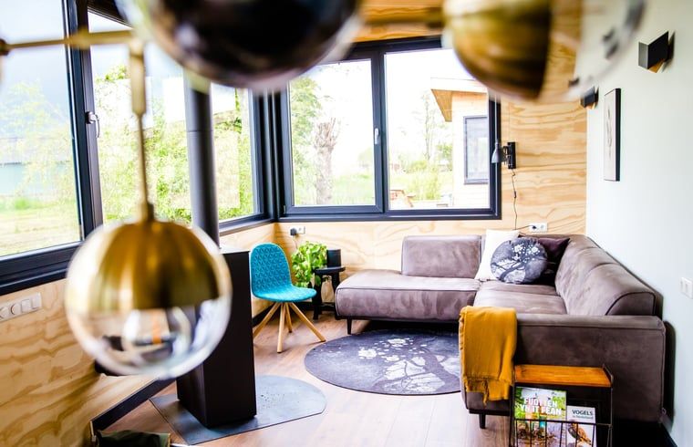La maison est bien équipée et dispose de tout le confort de base. Le coin salon est légèrement surélevé, ce qui permet de regarder l'eau depuis le banc. Entre la cuisine et le coin salon se trouve une table à manger ronde. La cuisine dispose également d'un siège supplémentaire devant la fenêtre.