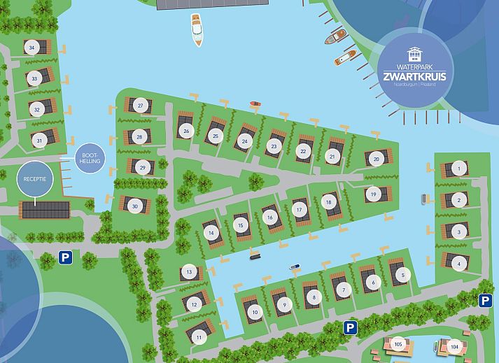 Watervilla’s waterpark Zwartkruis comfortabel en avontuurlijk recreëren vlakbij het Bergumermeer.
