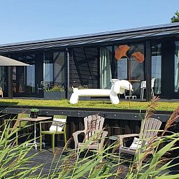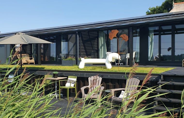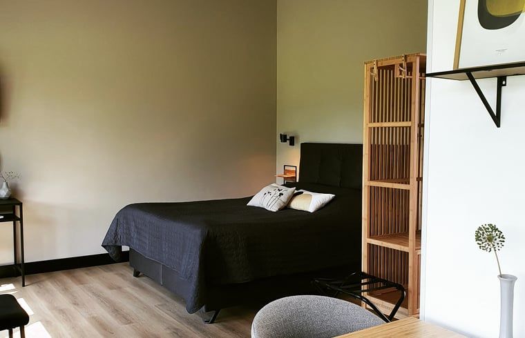 Une chambre durable, chaleureuse et luxueuse dans une étable récemment rénovée avec une vue imprenable sur les champs. La chambre dispose de ses propres sanitaires, d'une cuisine avec vaisselle et réfrigérateur, y compris café/thé, Smart TV, WIFI gratuit et un lit boxspring double confortablement fait. Il y a un petit bureau, une terrasse privée couverte et une terrasse côté eau.
