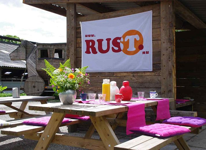 Maison de vacances au rez-de-chaussée. Salle de séjour spacieuse avec coin repas et coin salon avec télévision et portes-fenêtres donnant sur le jardin et la terrasse. La cuisine semi-ouverte comprend un lave-vaisselle, un micro-ondes, un réfrigérateur avec compartiment congélateur, une cuisinière à quatre feux, une bouilloire et une cafetière. Il y a trois chambres à coucher, une avec un lit double, une avec deux lits simples et une avec deux lits superposés. La salle de bains est équipée d'une douche, d'une baignoire et d'un lavabo. Il y a des toilettes séparées. À l'extérieur, il y a un beau jardin et une terrasse avec des meubles de jardin. Les enfants ont beaucoup d'espace pour jouer et il y a des équipements de jeux, un bac à sable, un trampoline et une balançoire. Un parking est disponible à la maison de vacances.