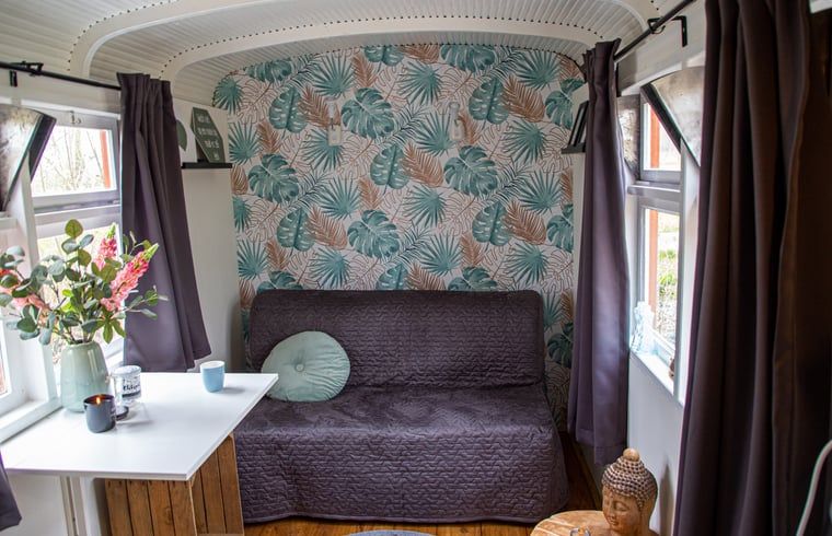 Ce Pipowagen unique convient à une ou deux personnes. La roulotte est équipée d'un canapé-lit. Il y a une table à l'intérieur avec 2 chaises pour le petit déjeuner. La roulotte est équipée d'un chauffage par ventilateur, d'un petit réfrigérateur et d'une bouilloire. Utilisation partagée avec plusieurs personnes : Il y a une kitchenette simple à l'extérieur avec de l'eau froide courante, une cafetière (Senseo) et un four à micro-ondes. Les installations sanitaires se trouvent dans une dépendance près de la roulotte. Parking sur le terrain privé. Le petit déjeuner peut être réservé pour 12,50 € p.p. par jour, à convenir à l'arrivée. Draps inclus.