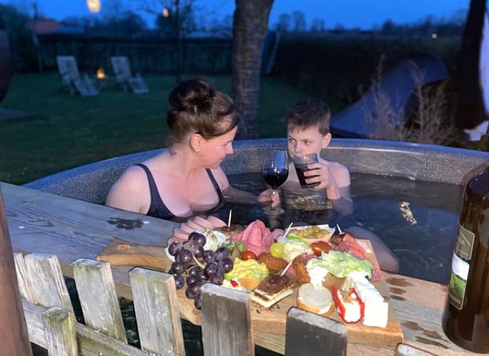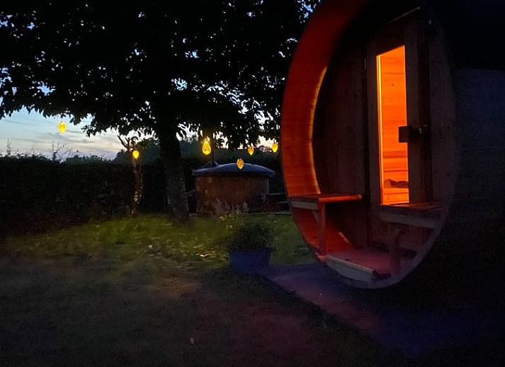 Venez vous détendre dans notre roulotte avec bain à remous et sauna. Situé dans un magnifique verger de l'Achterhoek, c'est l'endroit idéal pour se détendre. Profitez de la nature, faites griller de délicieux marshmallows près du feu de camp ou admirez le magnifique ciel étoilé. Le matin, vous pouvez commander votre petit-déjeuner. Un œuf frais des poules élevées en plein air fait partie du menu. Qu'il fasse un froid glacial, qu'il vente, qu'il pleuve ou qu'il soit en plein été, la cabane et le jacuzzi sont toujours confortables. Nous allumons le jacuzzi pour vous la première fois, après quoi vous pouvez allumer le poêle vous-même. Lors de la réservation d'un week-end ou d'une semaine, l'utilisation du jacuzzi est facturée une seule fois. Vous souhaitez utiliser le spa plus d'une fois ? C'est possible moyennant un supplément de 20 € par utilisation. Le sauna peut être réservé au prix de 50 euros par demi-journée. L'accueillante roulotte dispose d'un lit coffre confortable pour 2×2 personnes, avec les dimensions confortables d'antan (1,25 de large et 1,90 de long). Bref, un endroit pour se détendre.