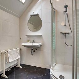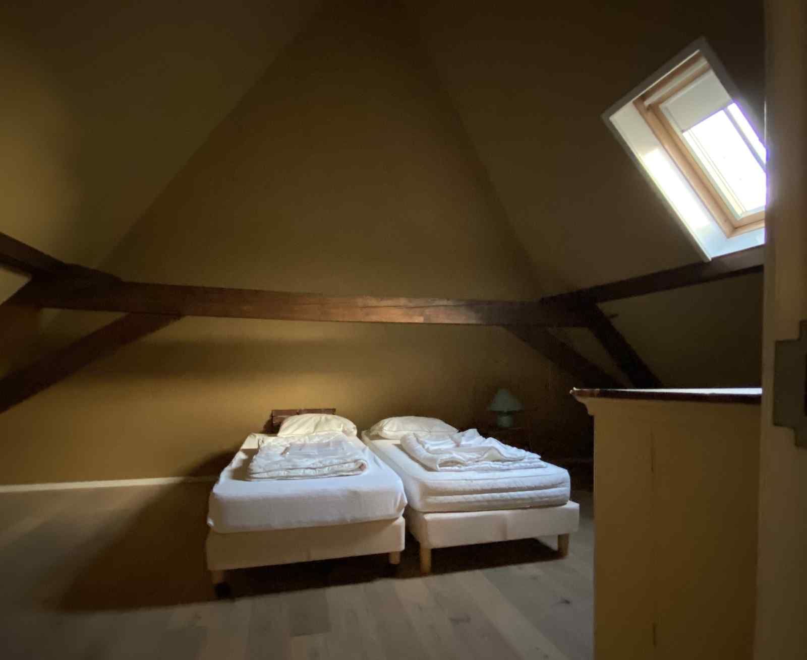 À l'étage se trouvent six autres chambres. Toutes les six sont équipées de deux lits simples. Une chambre donne accès au grenier, qui dispose également de deux lits ; il s'agit de la sixième chambre. Il y a également deux salles de bains, dont l'une est équipée d'une douche, d'une baignoire et d'un lavabo. L'autre salle de bains est équipée d'une douche, d'un lavabo et de toilettes. Il y a également des toilettes séparées.