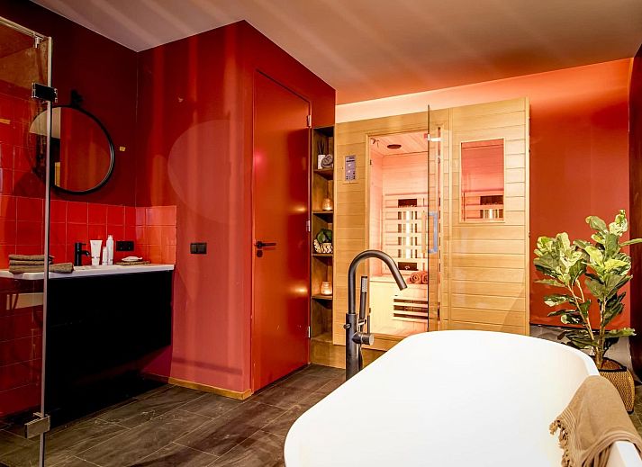 Modus Sauna 4 est un chalet indépendant et moderne pouvant accueillir 4 personnes. Depuis le hall d'entrée, vous accédez à un salon lumineux avec une cuisine ouverte et une grande table à manger. Il y a un coin salon confortable avec un canapé confortable et une télévision. La maison est moderne et luxueusement meublée et vous vous y sentirez immédiatement chez vous. La cuisine est équipée d'un lave-vaisselle, d'une bouilloire, d'une cafetière à filtre, d'un réfrigérateur avec compartiment congélateur et d'un four à micro-ondes combiné. Les deux chambres sont équipées de lits simples, qui sont placés côte à côte. Le chalet dispose également d'une salle de bains avec douche, lavabo et toilettes. Un sauna traditionnel est à votre disposition pour vous détendre. À l'extérieur, vous pourrez profiter de la nature environnante sur la terrasse avec salon de jardin dans le grand jardin. Vous pouvez utiliser la connexion Wi-Fi gratuite et garer votre voiture près du chalet.