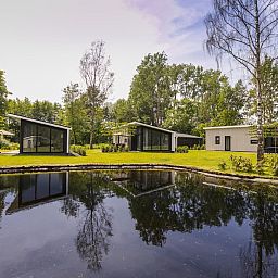 Lodge de luxe pour 4 personnes situé dans un coin à l'entrée du parc. L'emplacement au bord de l'eau offre de superbes vues. Deux chambres et une cuisine ouverte moderne.