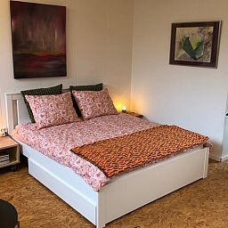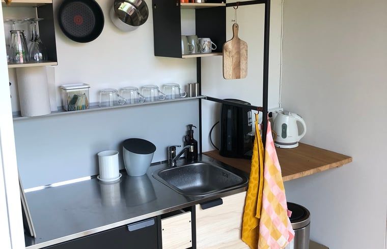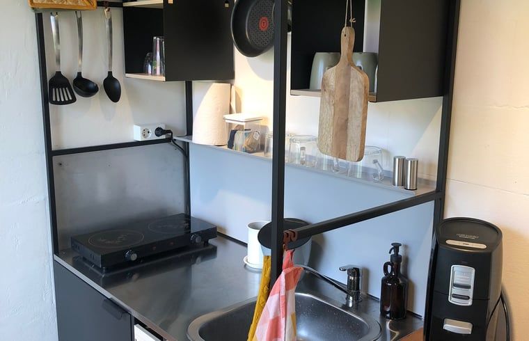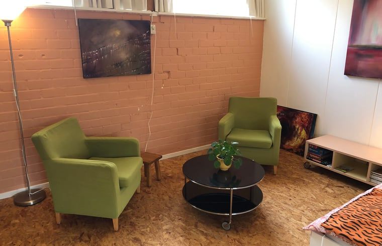 Vous disposez de votre propre (petite) salle de bain. Le lit avec de beaux matelas (160x200) est créé à partir du canapé. Le linge de lit et de toilette peut être réservé en supplément.