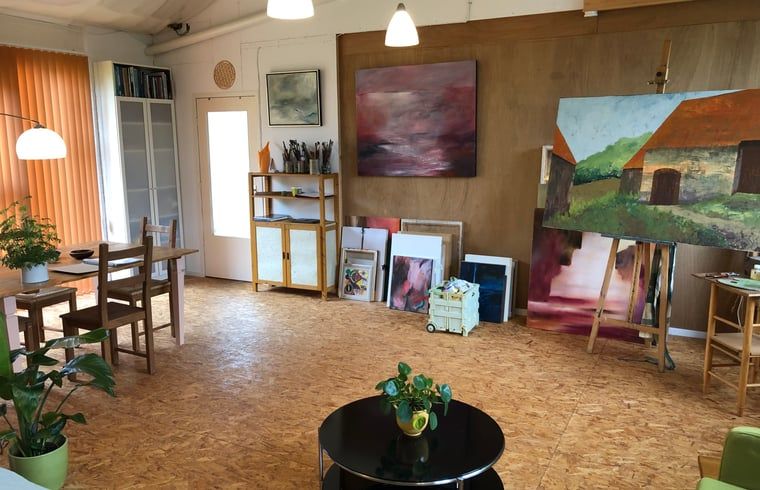 Vous séjournerez dans un studio spacieux (50 m2) et reposant. Entouré de tableaux et d'un beau jardin, c'est un endroit agréable pour se changer les idées. La maison d'hôtes fait partie de la grange. Vous accédez à votre entrée privée par l'allée et entrez dans la cuisine. À gauche de l'entrée, vous trouverez de la menthe fraîche (en saison).