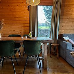 Bienvenue dans notre chalet ! La particularité de ce chalet en bois est qu'il dispose de 6600 m2 de terrain naturel. Le terrain est entièrement clôturé avec un grillage (ouvertures d'environ 10x15cm pour les petits animaux), un régal pour les chiens ! Forêt, étang, champ, verger, oiseaux et tous les autres animaux vivant sur la propriété vous accueillent. Sentez la nature et détendez-vous. Que ce soit avec un barbecue, un feu dans le brasero ou un jeu sur la véranda. Ou en rêvant dans le hamac. L'extérieur est une oasis de verdure. À l'intérieur, vous trouverez toutes les commodités. Comme le linge de lit, les serviettes, le wifi, le chauffage central, le lave-linge et le sèche-linge et une cuisine ouverte avec lave-vaisselle. Trois chambres à coucher et une salle de bains avec douche et toilettes. Chambres : une chambre spacieuse avec un lit double, une petite chambre avec un lit de 190 cm de long + un lit de 180 cm et un grenier confortable avec un lit double (ou 2x1 personne). Le cottage est idéal pour 4 adultes/enfants.