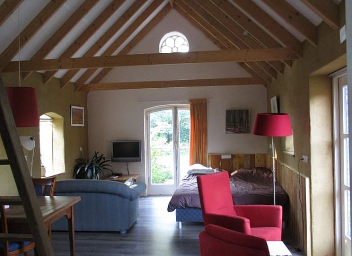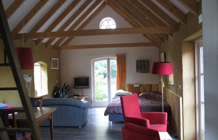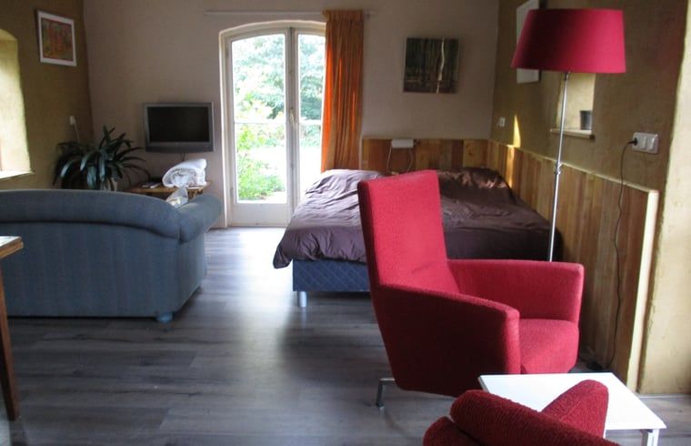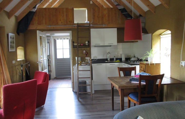 L'agréable gîte naturel se trouve dans la cour des propriétaires, dans le verger, avec vue sur le pâturage des poneys. Des chouettes chevêches nichent dans le noyer à côté du gîte. Le gîte dispose d'un salon-salle à manger avec télévision et d'une kitchenette avec plaque de cuisson au gaz et réfrigérateur. Les murs sont recouverts de torchis. Il y a également un hall et une salle de bains spacieuse avec douche et toilettes. Le gîte est équipé d'une connexion Wi-Fi et d'une télévision. À l'extérieur, vous disposez de deux terrasses et, bien sûr, d'un verger, ce qui vous permet de choisir entre le soleil et l'ombre. Bien que le gîte soit proche de la maison principale, vous êtes complètement entouré de verdure.