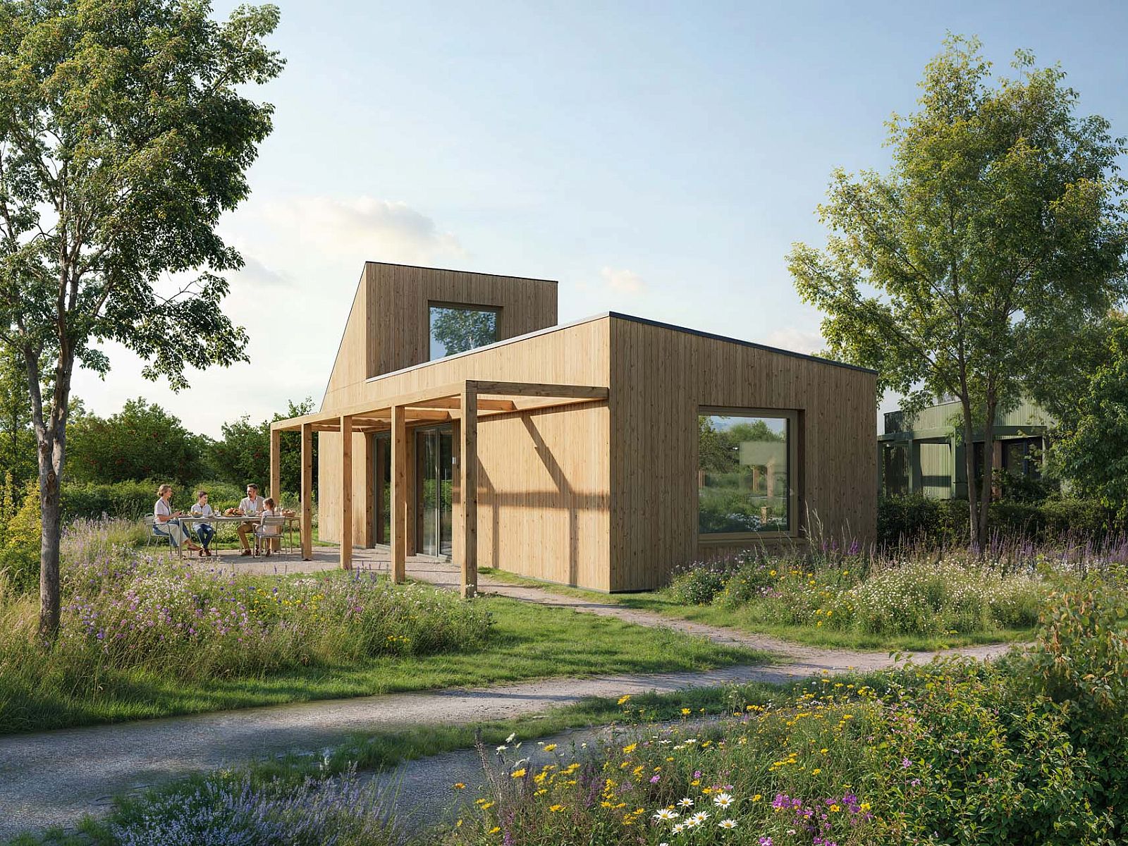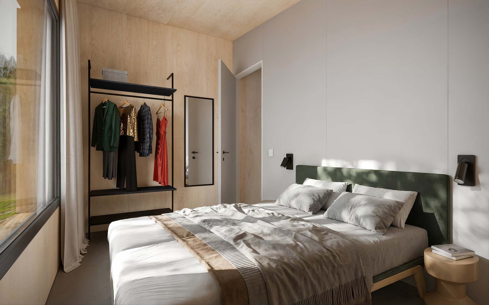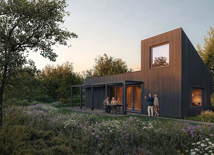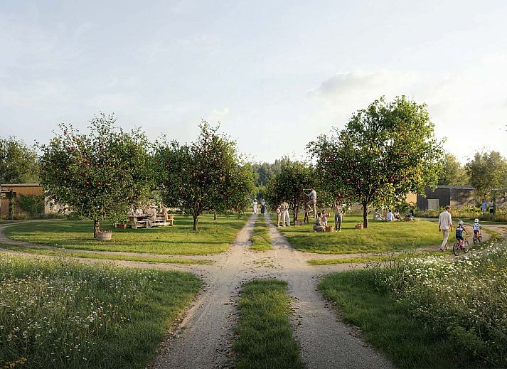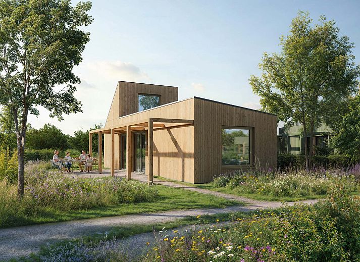 Het resort zelf is ontworpen als een groene oase waarin duurzaamheid en comfort samenkomen. De 80 accommodaties zijn landschappelijk ingepast en omringd door wadi’s, bloemenvelden en een voedselbos. Wateropvang, biodiversiteit en natuurlijke beplanting zijn integraal onderdeel van het ontwerp. Bij aankomst parkeer je onder een solar carport en wandel je via groene paden naar je lodge. De opzet is ruim en natuurlijk, waardoor rust en privacy centraal staan. Goldberg Gardens Eco-resort Vorden is geen traditioneel vakantiepark, maar een duurzaam eco-resort waarin architectuur, landschap en exploitatie samenkomen in één doordacht concept.