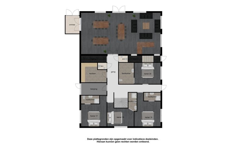 Dans les environs boisés de Berg en Dal (près de Nijmegen), vous trouverez cette luxueuse maison de groupe. La Maison de la Nature dispose de 10 chambres et peut accueillir jusqu'à 26 personnes. Les chambres ont toutes leur propre salle de bains et sont équipées de lits à ressorts. Il y a un coin salon confortable avec une cheminée et une belle vue. Il y a une bonne cuisine. À l'extérieur, il y a un beau jardin avec une grande terrasse. Le jardin est équipé d'une aire de jeux, d'une table de ping-pong et d'un foyer. Depuis le jardin, vous pouvez marcher directement dans les bois, avec un foyer. La région de Berg en Dal est connue pour ses belles randonnées pédestres et cyclistes. Des sentiers de randonnée et des pistes cyclables/de VTT partent de la porte d'entrée !