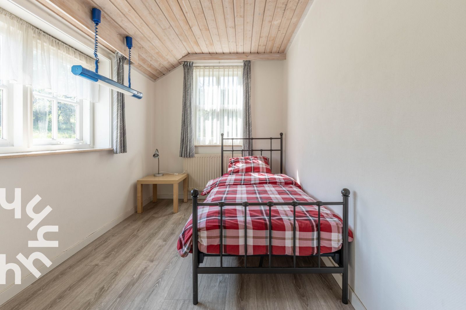 Grand débarras, toilettes séparées, salon spacieux avec grande table à manger et coin salon avec télévision, lecteur DVD et radio, cuisine comprenant un lave-vaisselle, un four, un micro-ondes, une cuisinière à quatre feux, un Senseo, une cafetière à filtre et une bouilloire. Au rez-de-chaussée, il y a une chambre à coucher avec un lit simple et une chambre à coucher avec deux lits simples (qui peuvent être réunis pour former un lit double).