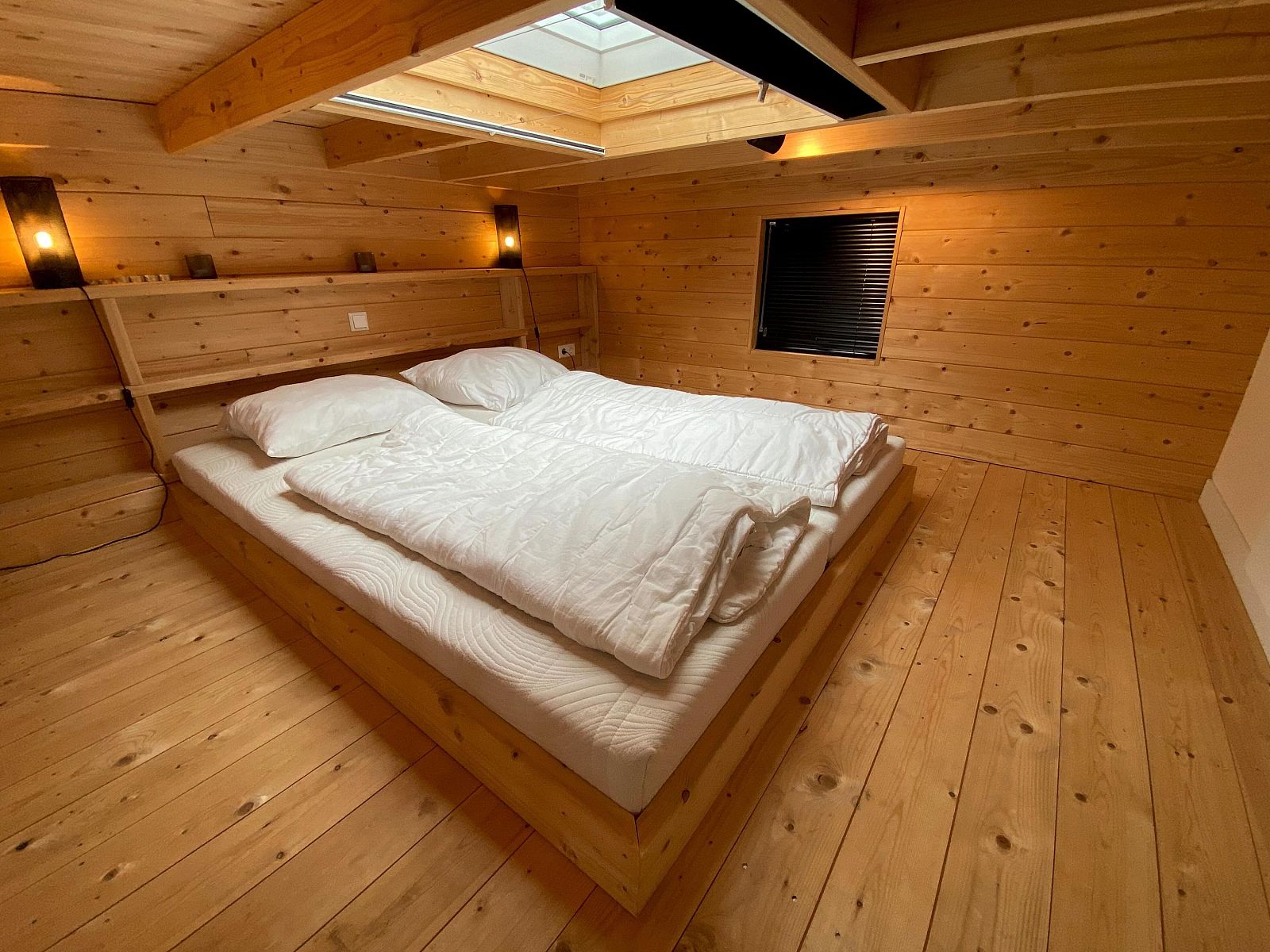 Tiny House 2 - is een vrijstaand en gezellig chalet dat geschikt is voor 2 personen. Het combineert design en functionaliteit in een kleine ruimte: dankzij slim gebruik van de ruimte heeft het alles wat je nodig hebt in een vakantiehuis: een badkamer met douche, toilet en wastafel, een kitchenette, een eettafel, een bank, evenals een gezellige bank en veel opbergruimte. Het slaapgedeelte, half open naar het woongedeelte onder het dak, is een echte blikvanger. Boven het tweepersoonsbed bevindt zich een groot dakraam, voor extra licht en een gevoel van ruimte.