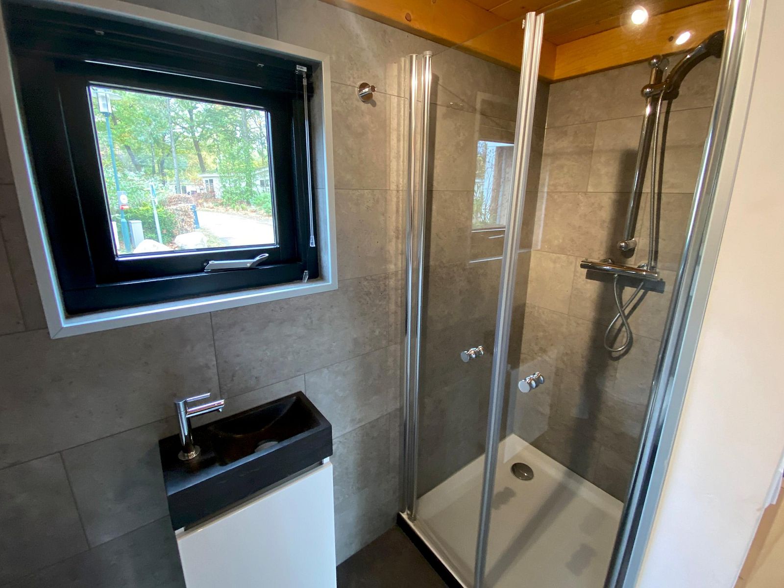 Ramen van vloer tot plafond in het woongedeelte geven je het gevoel omringd te zijn door de natuur. Via een deur in het woongedeelte bereikt u het terras met tuinmeubilair. Deze extra buitenruimte vergroot de leefruimte, vooral in de warmere maanden.
