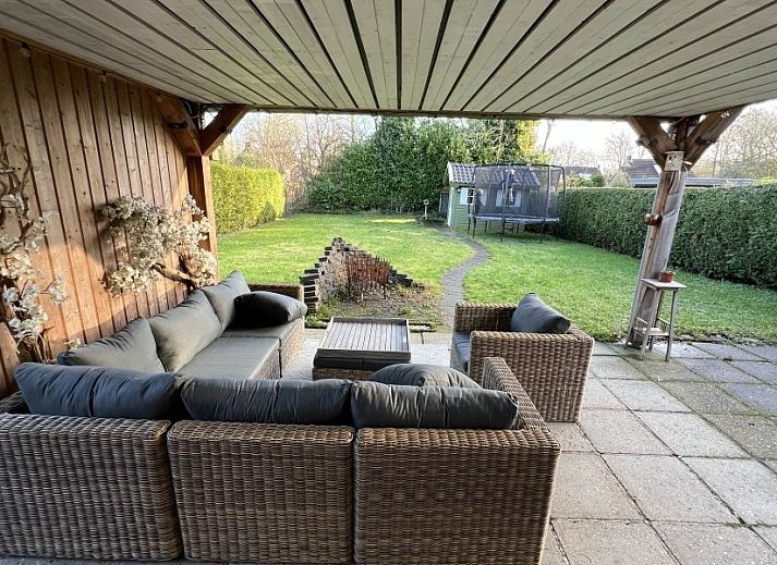 A l'arrière de la maison de vacances se trouve un bel auvent avec un coin salon et salle à manger.