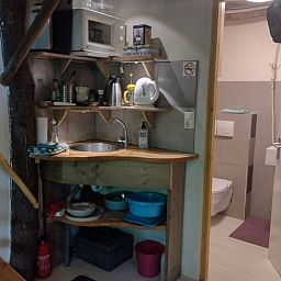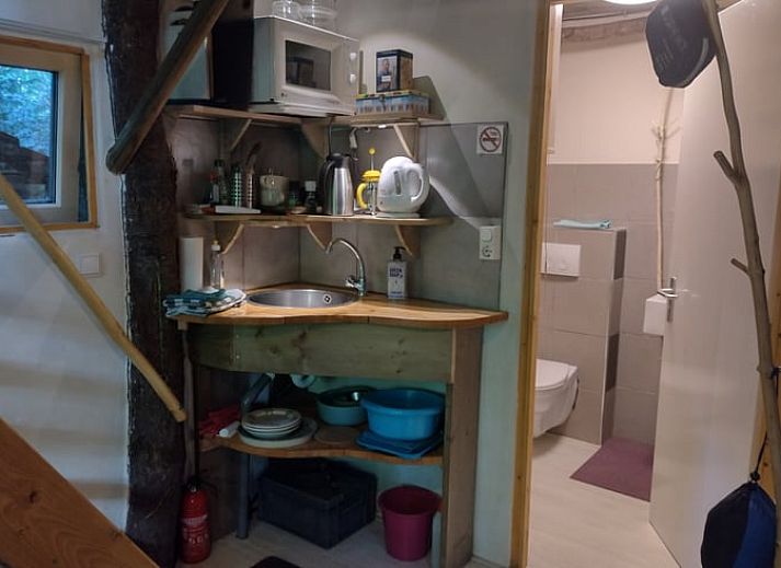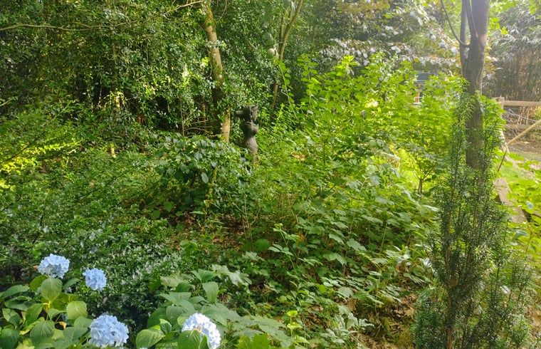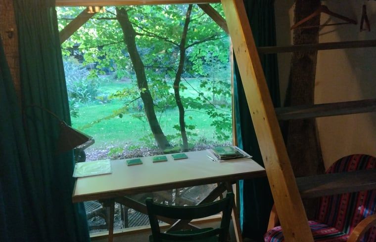 Dans notre jardin derrière la maison, cachée à la lisière de la forêt parmi les bambous, se trouve notre cabane dans les arbres. Quand nos enfants étaient petits, ils avaient déjà une cabane dans les arbres. Ils ont maintenant quitté le nid et, après ma retraite, j'ai construit une cabane dans les arbres vraiment professionnelle. Elle est principalement construite avec des matériaux de récupération, mais elle est équipée de double vitrage et entièrement isolée. Les arbres et le bois de construction proviennent de notre jardin. Il y a une petite cuisine et des toilettes avec un lavabo, et sur la terrasse, il y a une cuisinière avec des casseroles. En haut de l'escalier, il y a une alcôve avec deux lits qui peuvent être rapprochés, très confortable. La porte donne accès à la véranda avec balustrade, où vous pouvez prendre votre petit-déjeuner ou vous détendre le soir, avec vue sur le jardin et l'étang. Grâce au bambou, vous êtes à l'abri des regards. Bon à savoir : derrière notre maison, il y a également un studio qui est également loué. Dans le débarras, vous trouverez une salle de douche et un réfrigérateur.